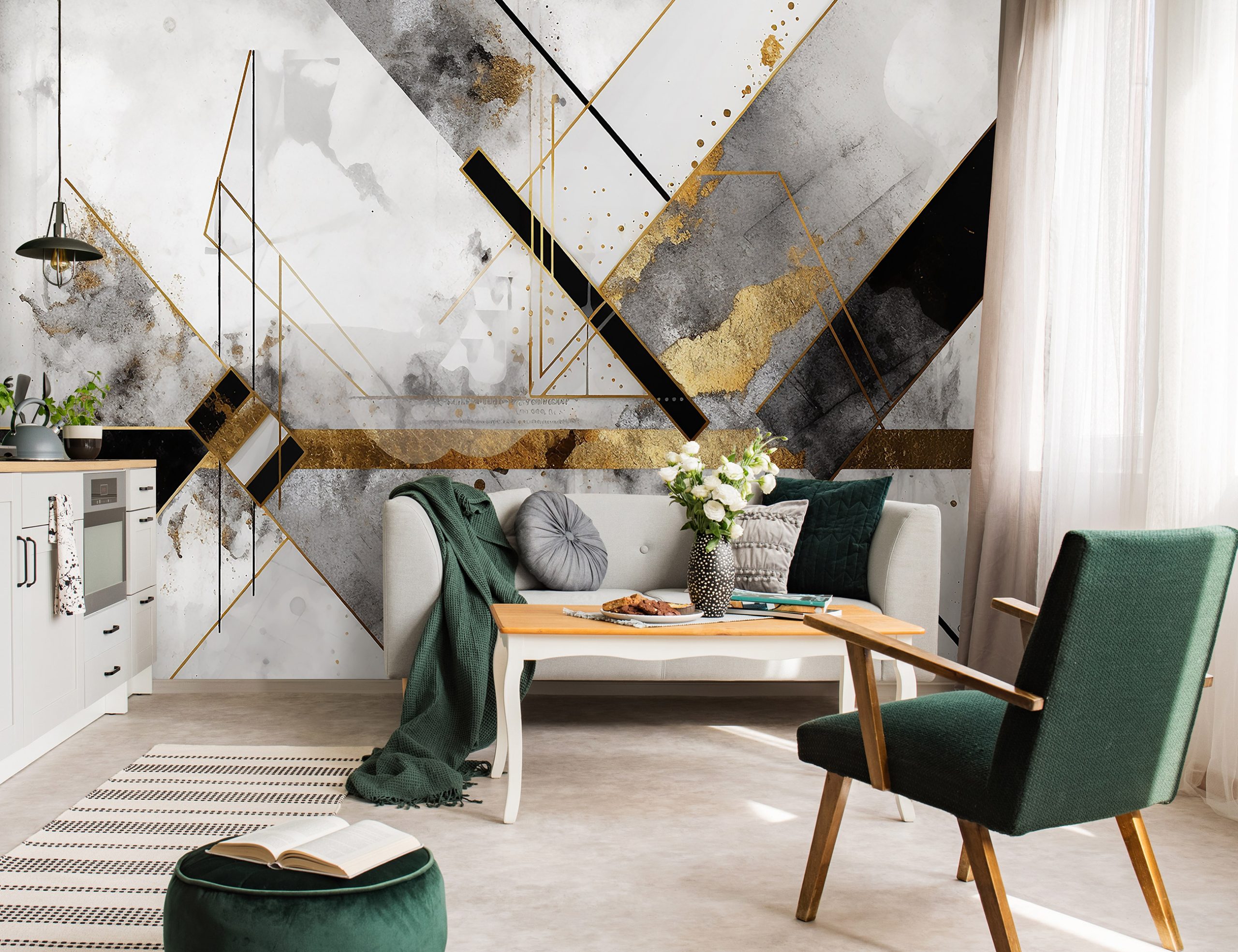 Óriás vlies fotótapéta modern geometriai mintával, mely különlegesen jól mutat nagy terekben. A fotótapéta felülete matt, nem fényes.