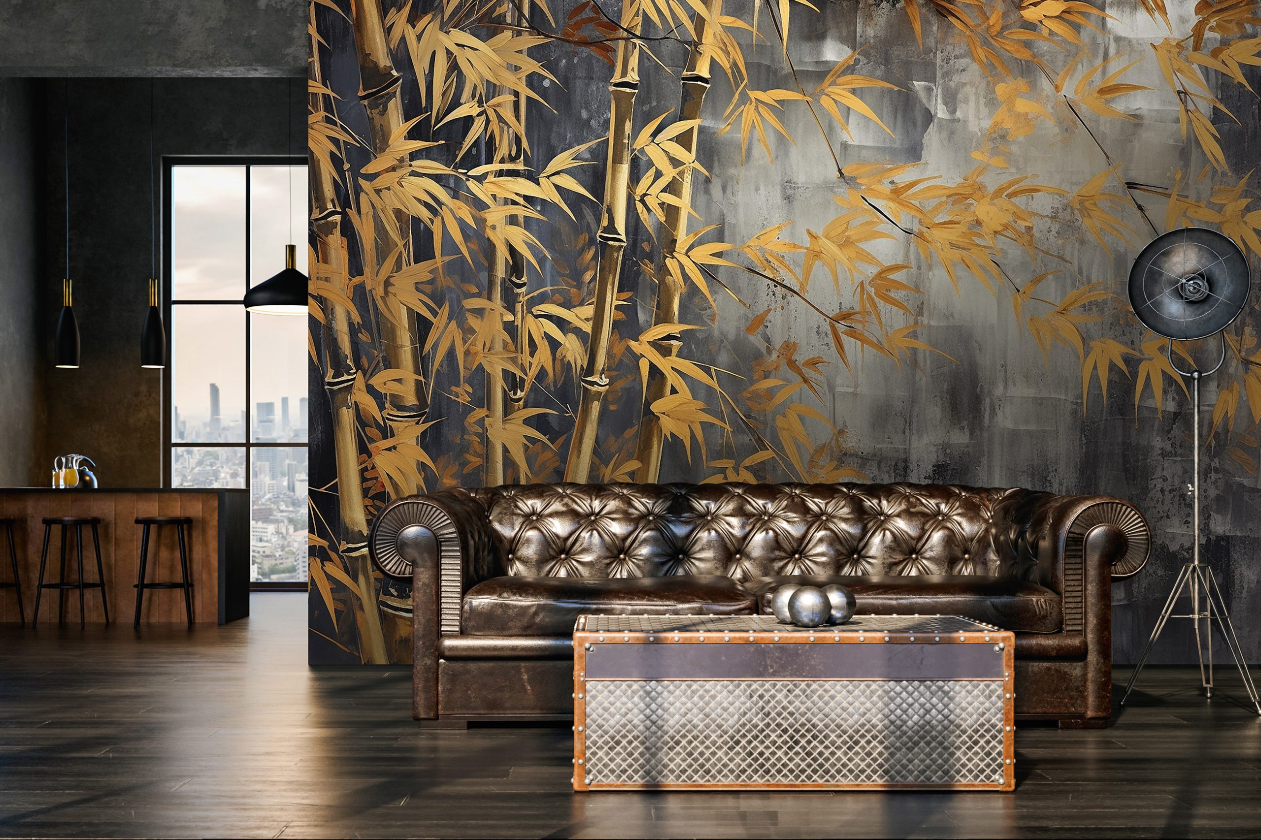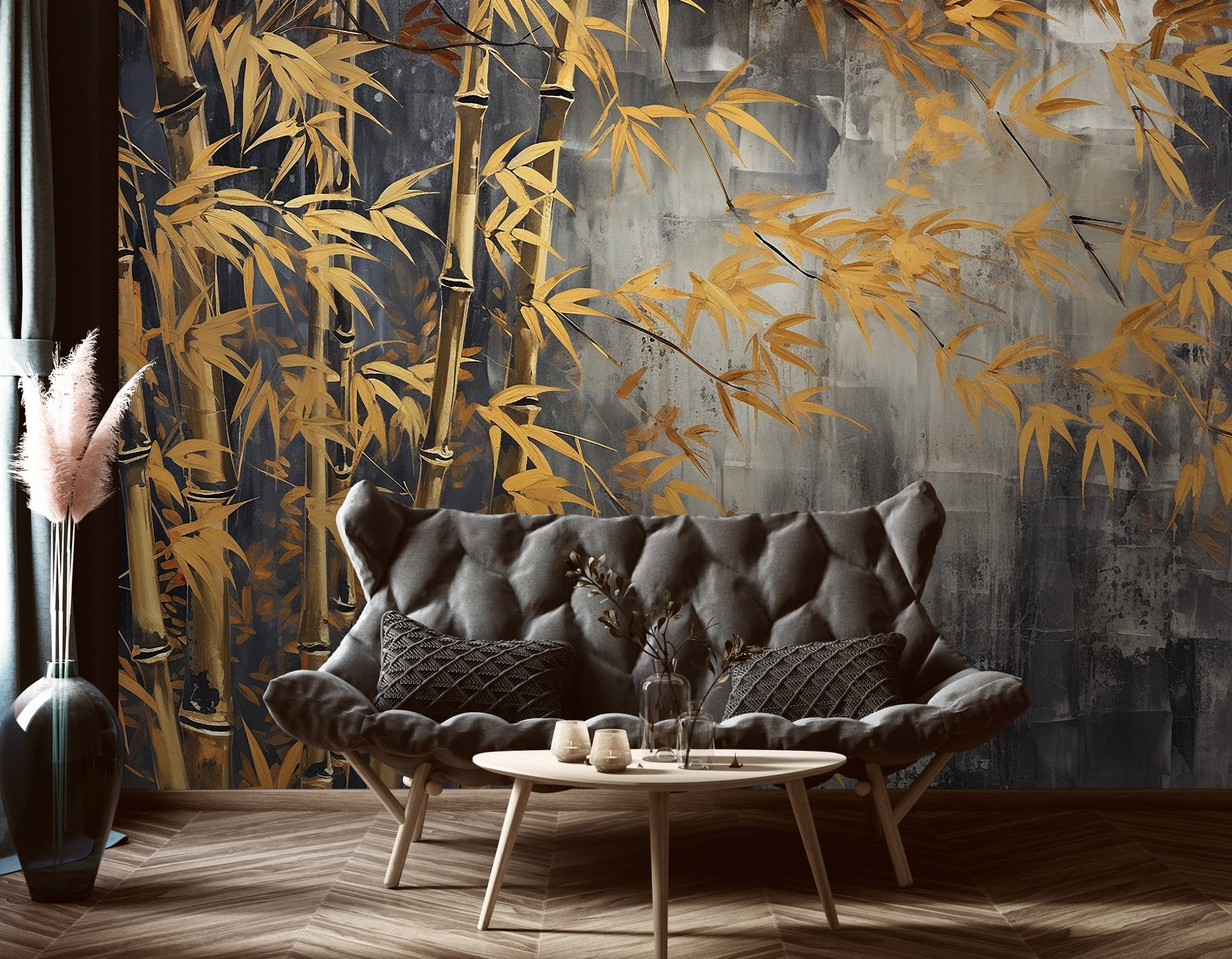 Orientális stílusú fotótapéta bambusz mintával, melynek erőteljes mintája látványosan dekorálja az enteriőrt.