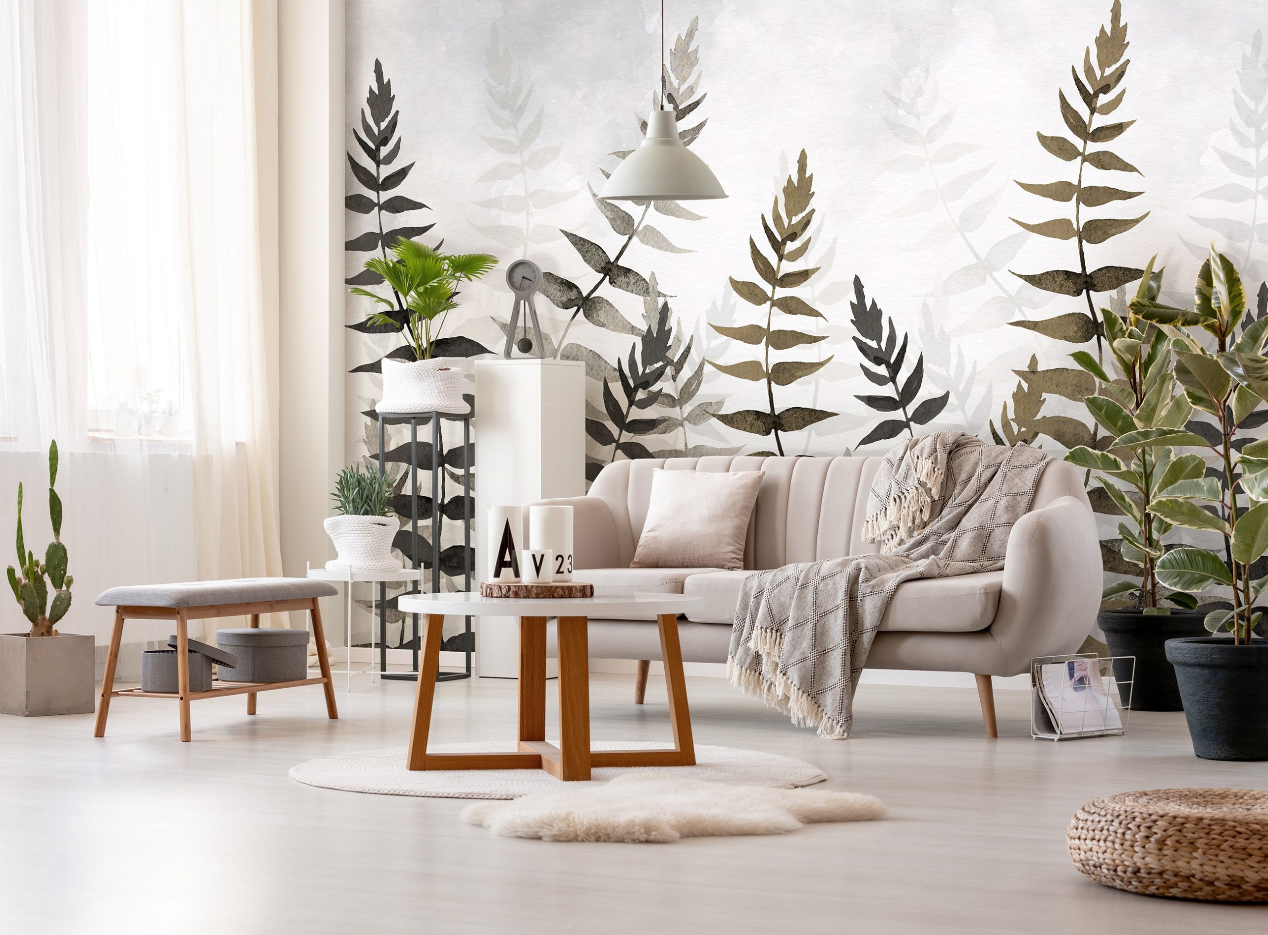 A természet harmonikus szépsége költözik otthonodba a nagy méretű levélmintás fotótapétával, melynek visszafogott árnyalata jól illeszthető más dekorációs elemekkel.