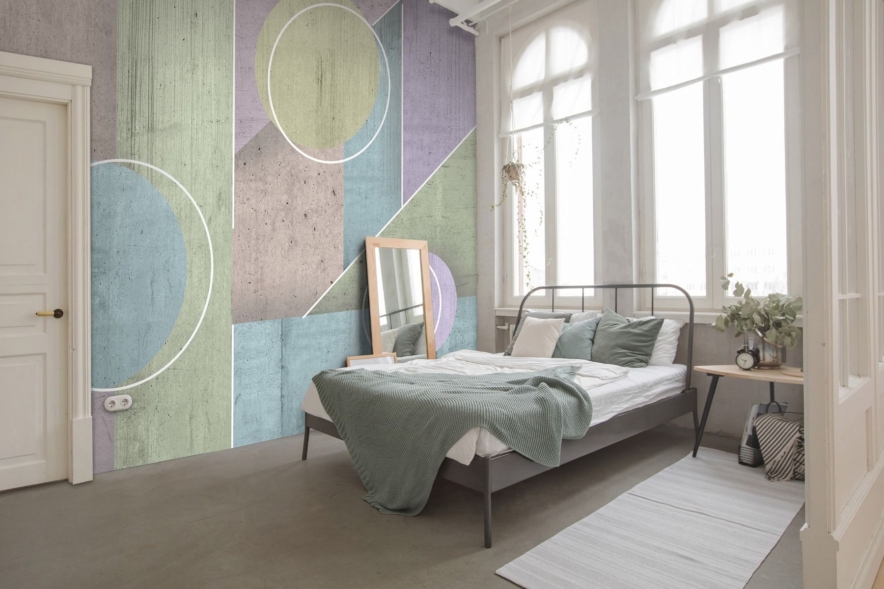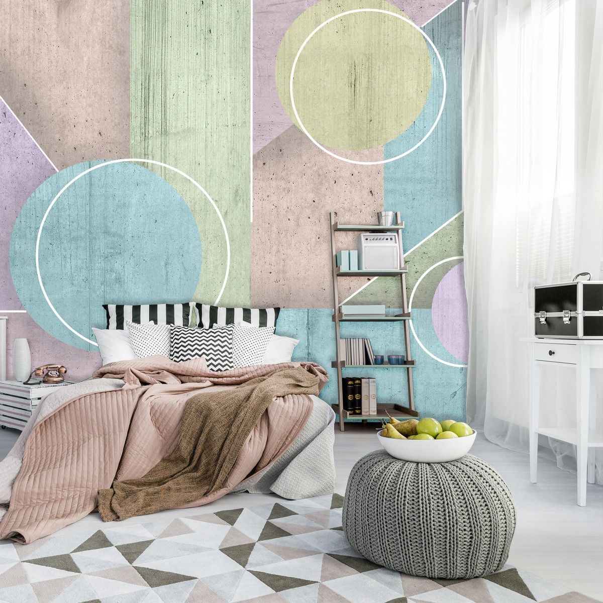Pasztell árnyalatú fotótapéta geometrikus mintával, mely remekül illik modern otthonokba.