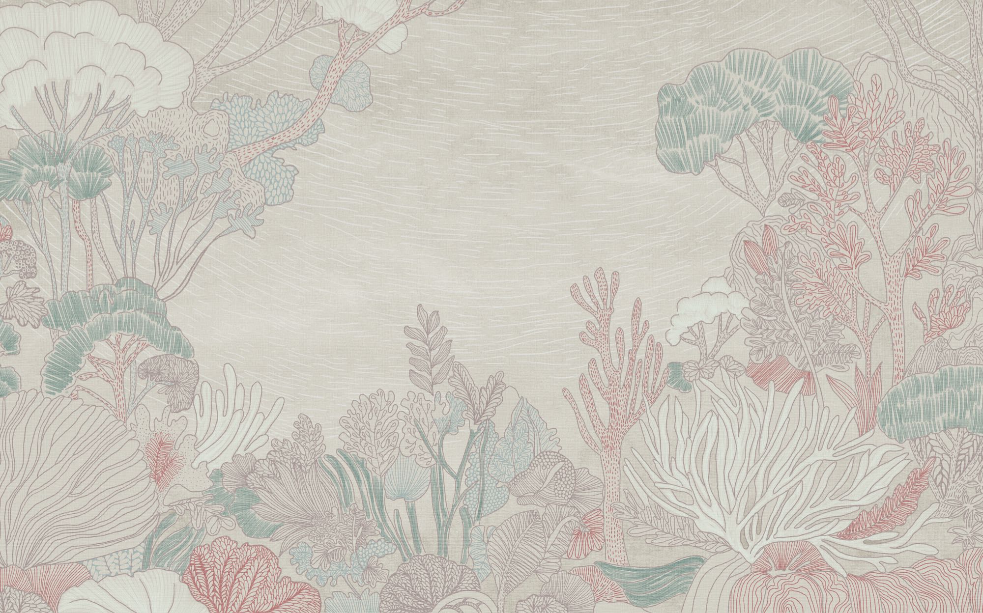 A Pasztell tengeri világ mintás fotótapéta – Virentia Subaquatica egy különleges, illusztratív hangulatú design, amely a víz alatti élővilág finom formáit idézi meg. A korallszerű növények, lágy vonalvezetésű motívumok és visszafogott pasztell árnyalatok harmonikus, nyugodt atmoszférát teremtenek a térben.