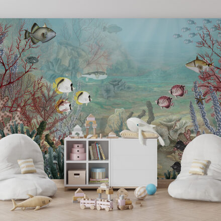 Prémium vlies fotótapéta az óceánok világával, melyen a tengeri élővilága és színpompás korallok lenyűgöző látványa jelenik meg. A fotótapéta mintájának részletgazdag rajzolata térnövelő hatással rendelkezik.