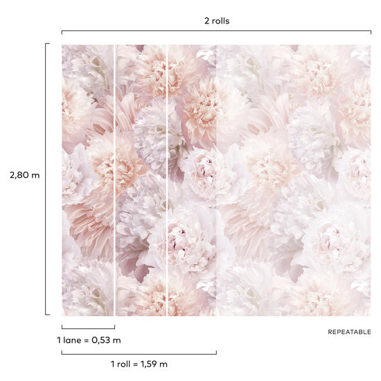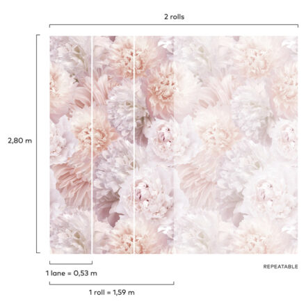 Ez a púderrózsaszín bazsarózsákat ábrázoló vinyl fotótapéta lágy, elegáns hangulatot teremt, amely egyszerre romantikus és időtlen. A selymes árnyalatokban megjelenő, dús virágfejek finoman borítják be a falat, harmonikus, meghitt atmoszférát hozva létre a térben.