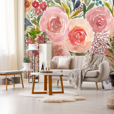 Fiatalos lendületet és romantikát sugároz a fotótapéta, melynek mintáját a rajzolt rózsavirágok alkotják.