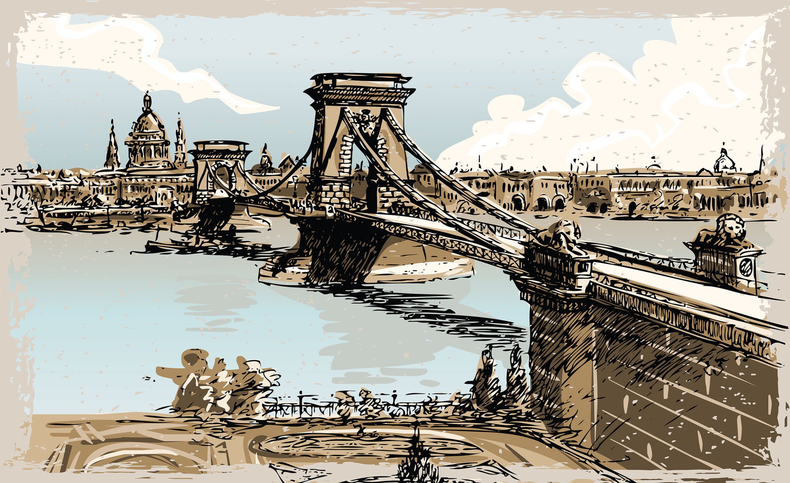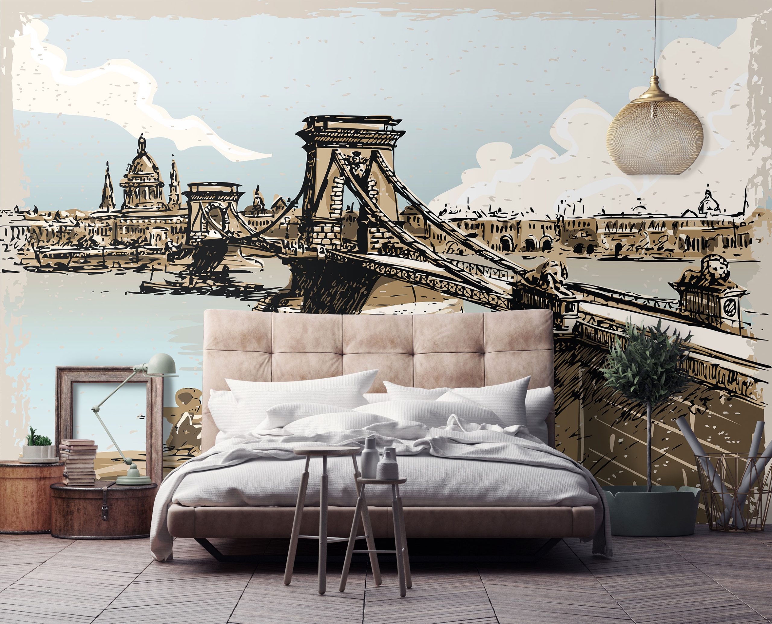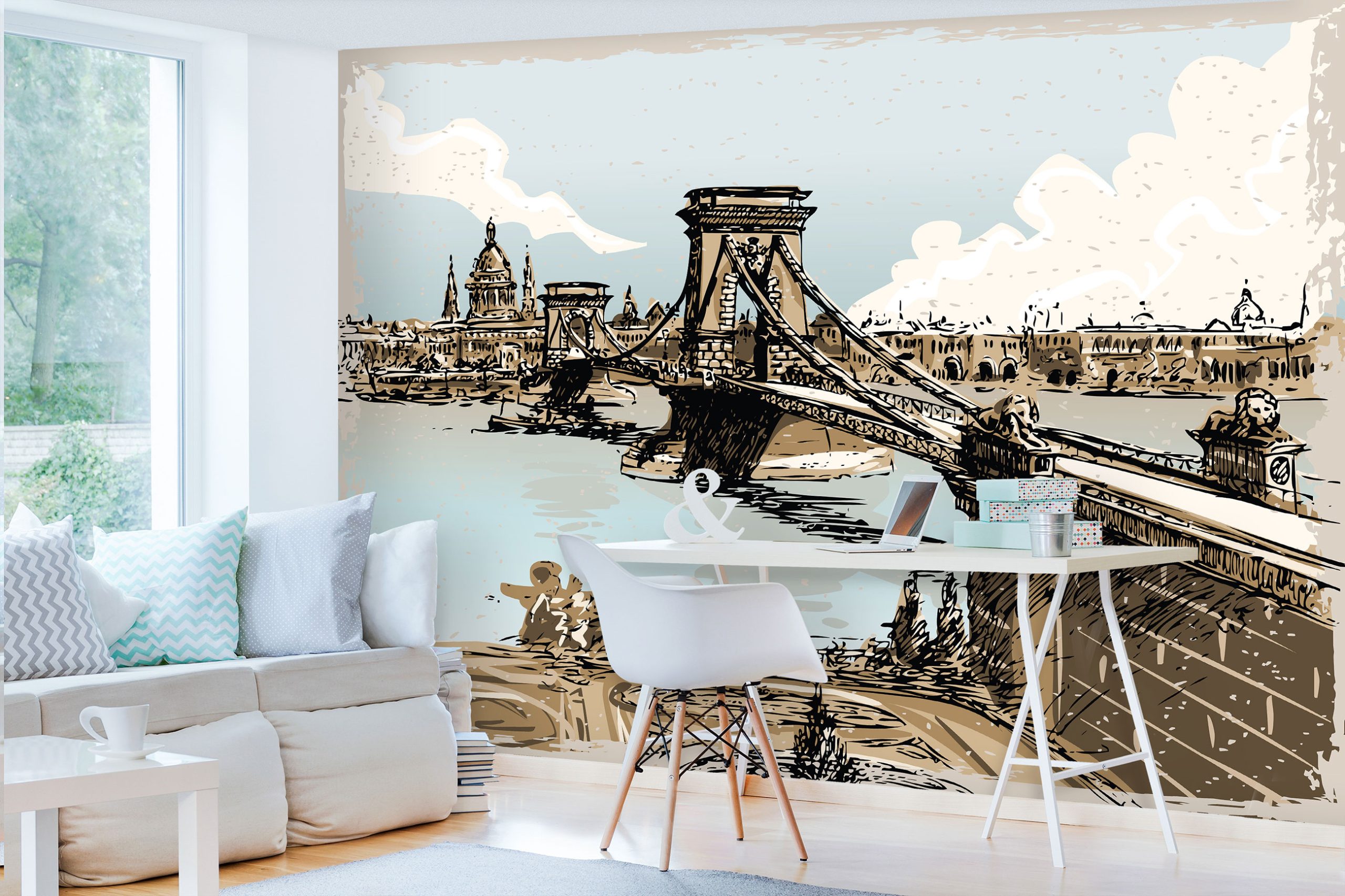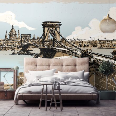 Retro stílusú fotótapéta budapesti látképpel, melyen a Lánchíd és a Parlament rajzolódik ki. Hangulatos fotótapéta, mely a 19. század történeti korszakába repít minket.