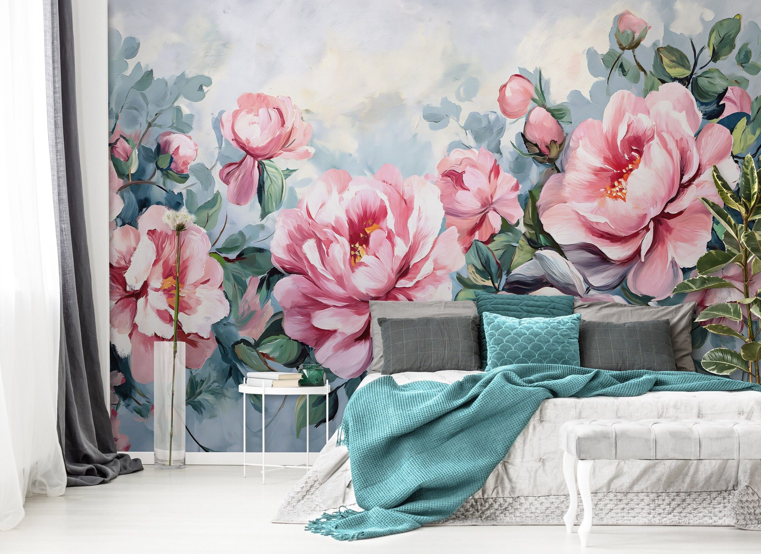 Romantikus bazsarózsás fotótapéta, melynek vidám, élénk színei a tavaszt varázsolják otthonunkba.