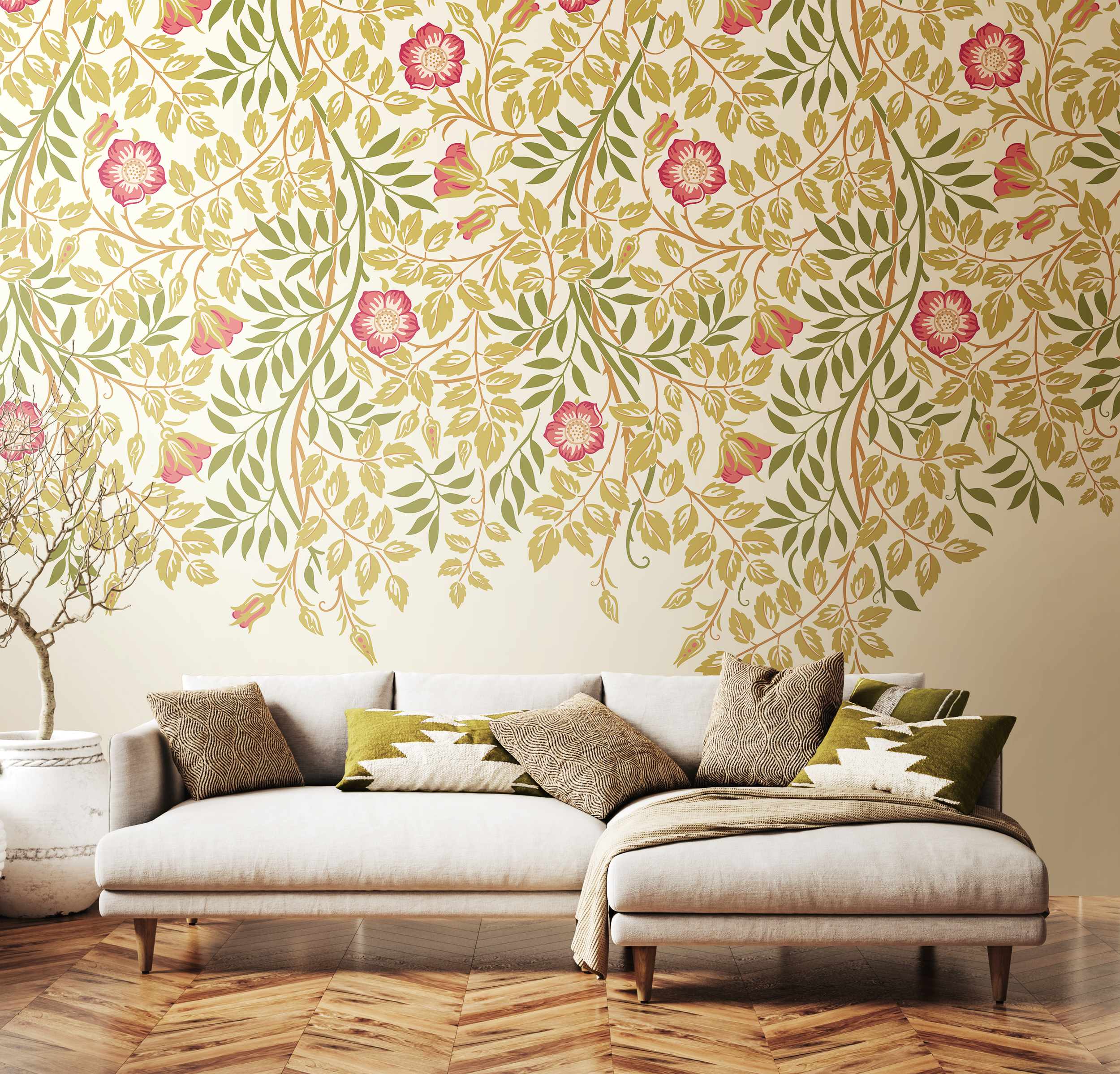 Romantikus fotótapéta leomló virágokkal, mely tökéletes dekoráció ágy vagy kanapé mögötti falra, hogy egyedi atmoszférát teremtsünk otthonunkban.