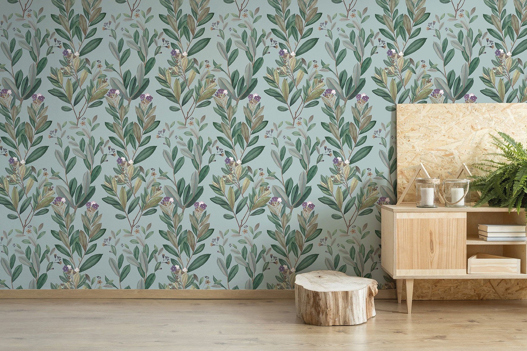 Romantikus levél és virág mintájával látványosan dekorálja a falat a tapéta. Lenyűgöző látványát különösen több panel egymás mellé helyezésével adja.