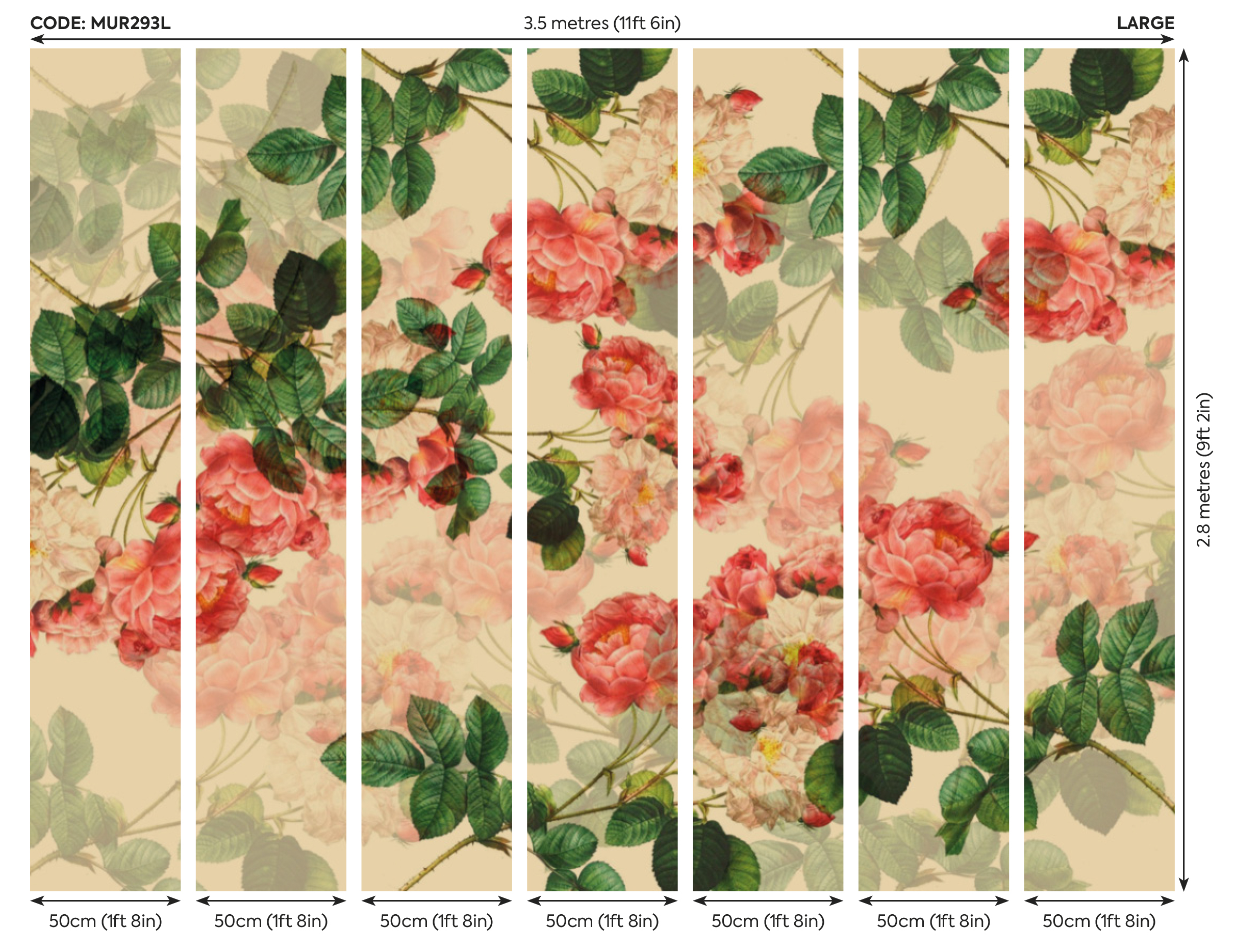 ✔ L – 350 cm széles x 280 cm magas (7 db 50 cm -es csíkból épül fel)