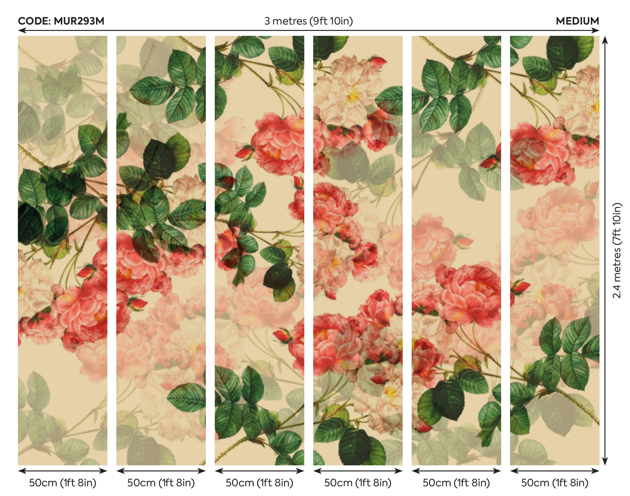 ✔ M – 300 cm széles x 240 cm magas (6 db 50 cm-es csíkból épül fel)
