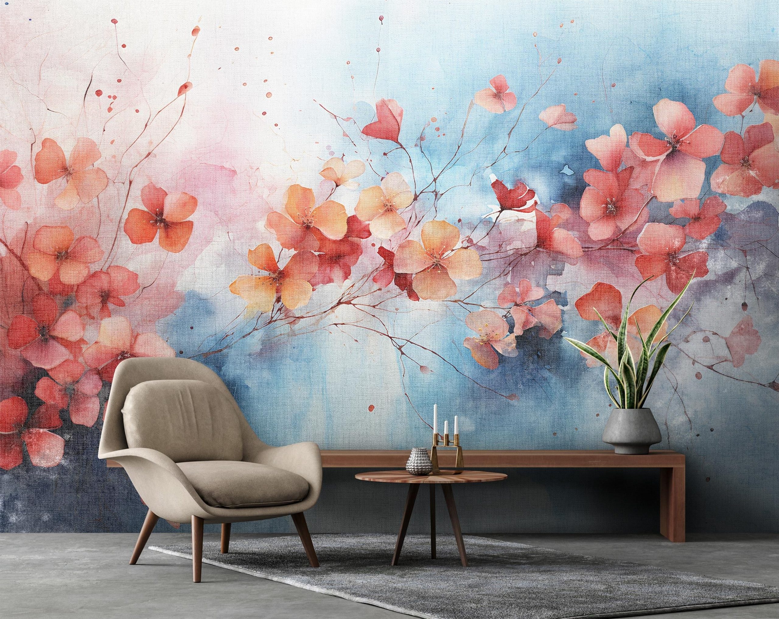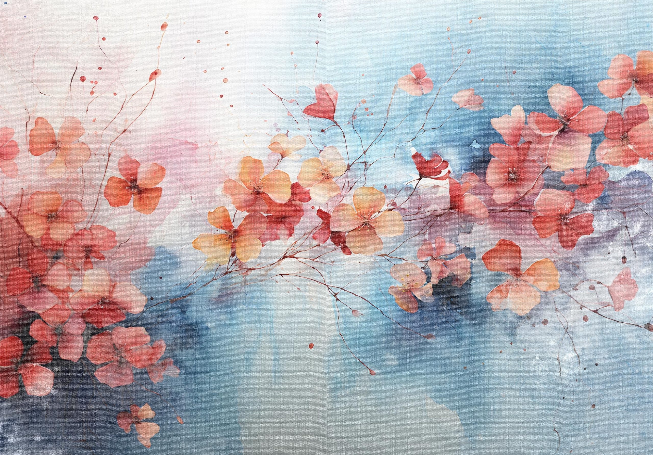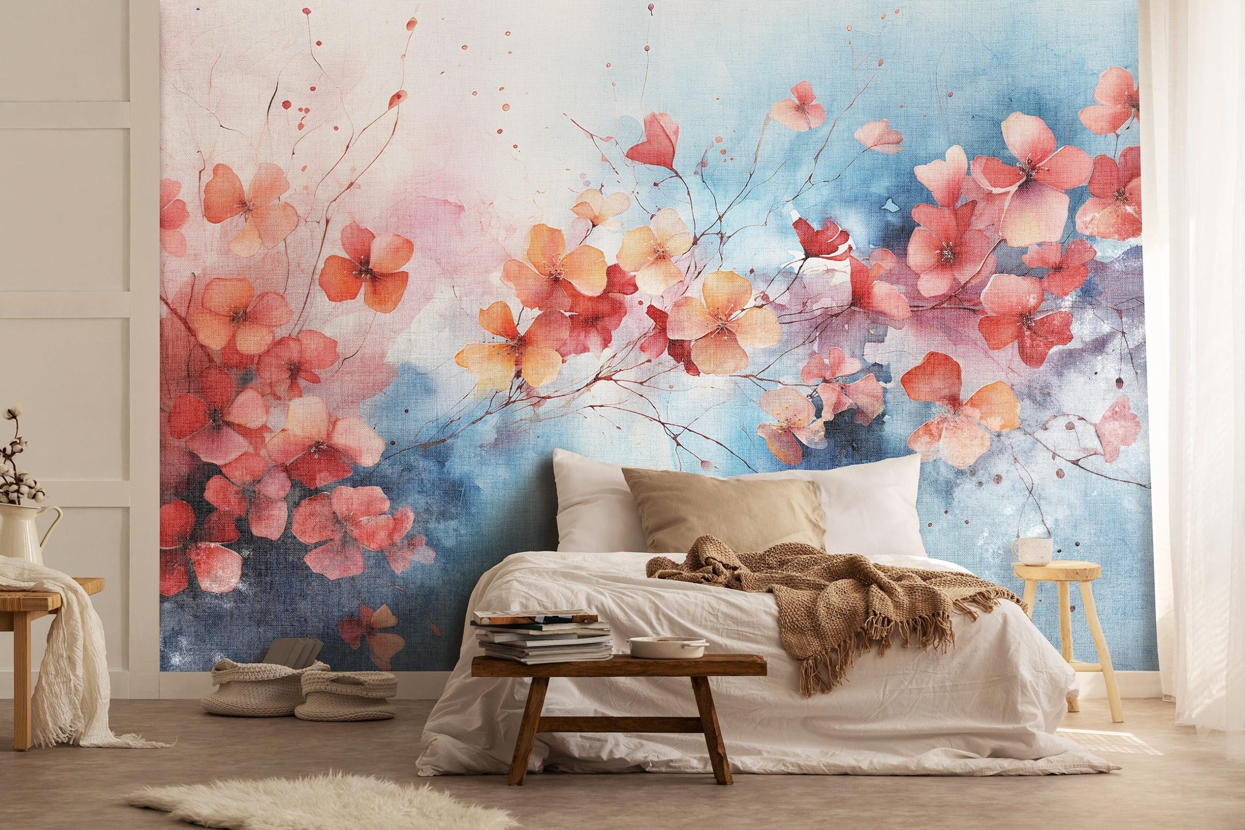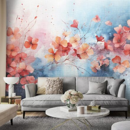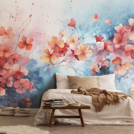 Romantikus virágos fotótapéta, melynek cseresznyevirágai remekül mutatnak kanapé vagy ágy mögötti falon.