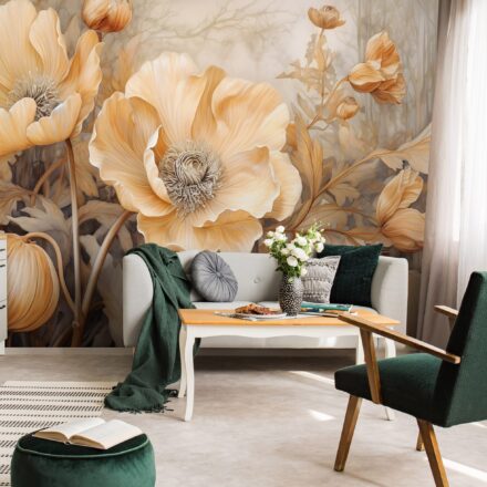 Romantikus, nagyvirágos fotótapéta, melynek rajzolata elegáns látványt nyújt. A tapéta kellemes árnyalata otthonos melegséget teremt, a virágok szépsége pedig nőies romantikát sugároz.