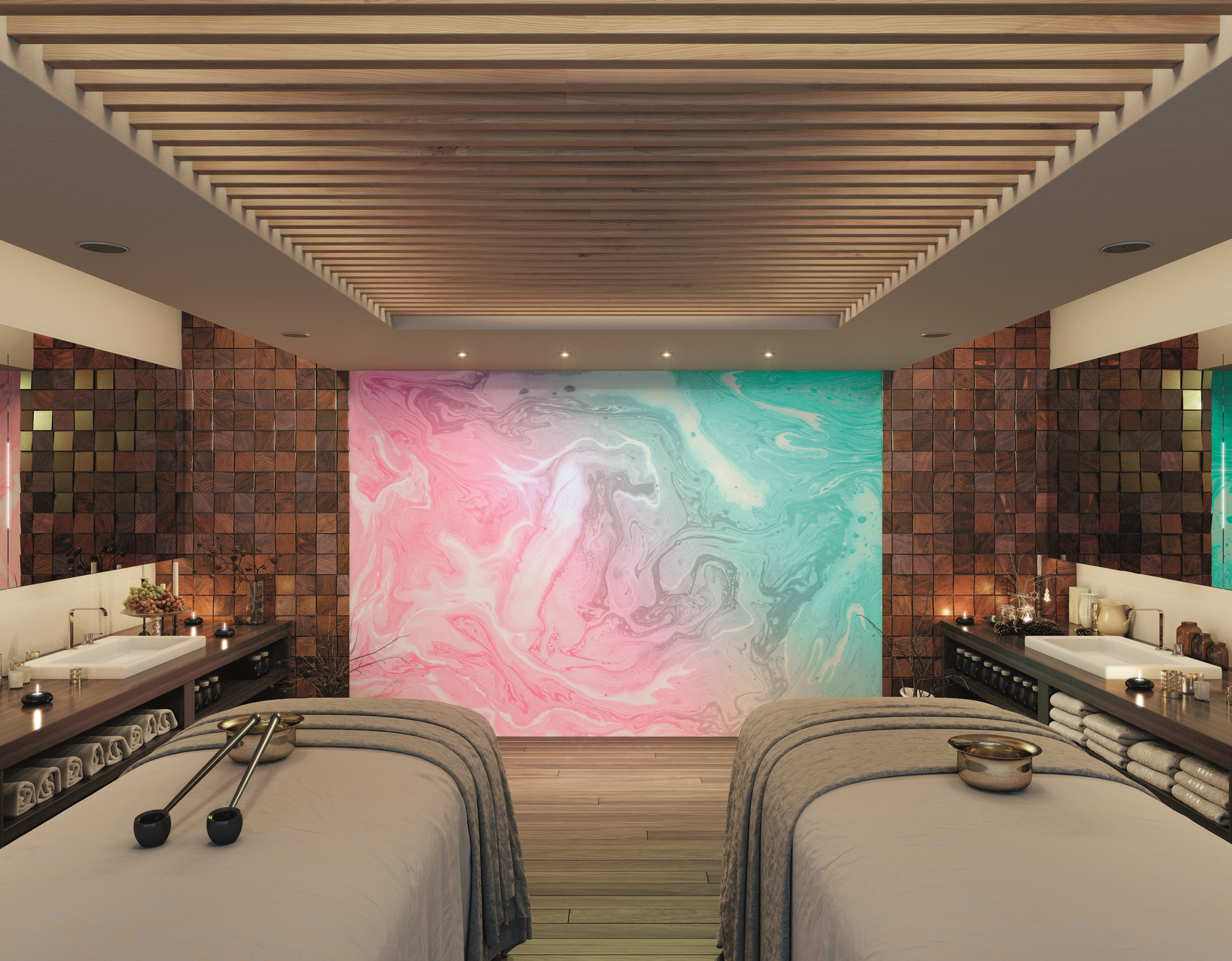 Fiatalos, színes fotótapéta, melynek absztrakt mintája jól alkalmazkodik otthonod további dekorációihoz.