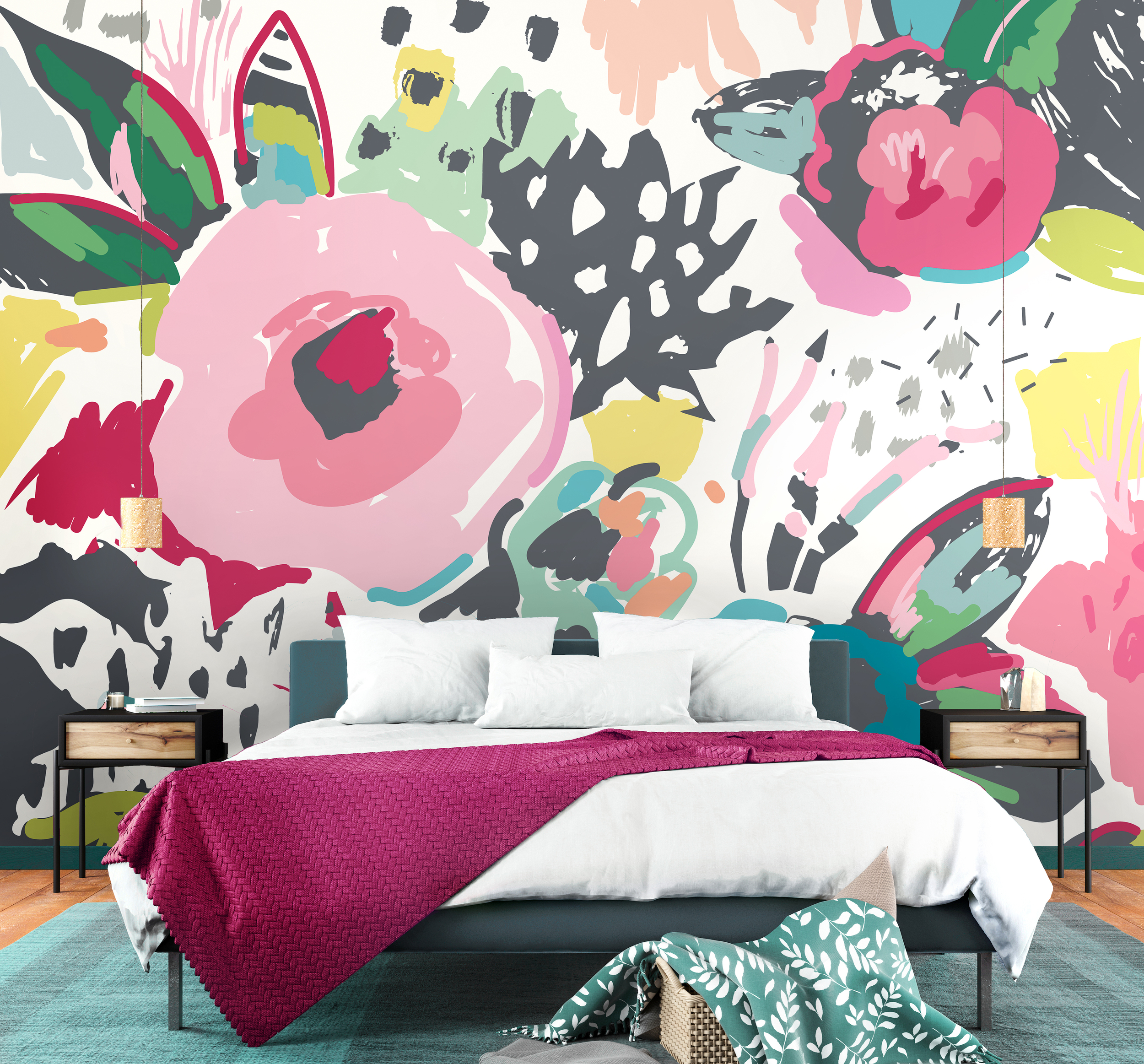 Fiatalos lendületet sugároz a fotótapéta, melyen óriás virágok jelennek meg modern, absztrakt formában.
