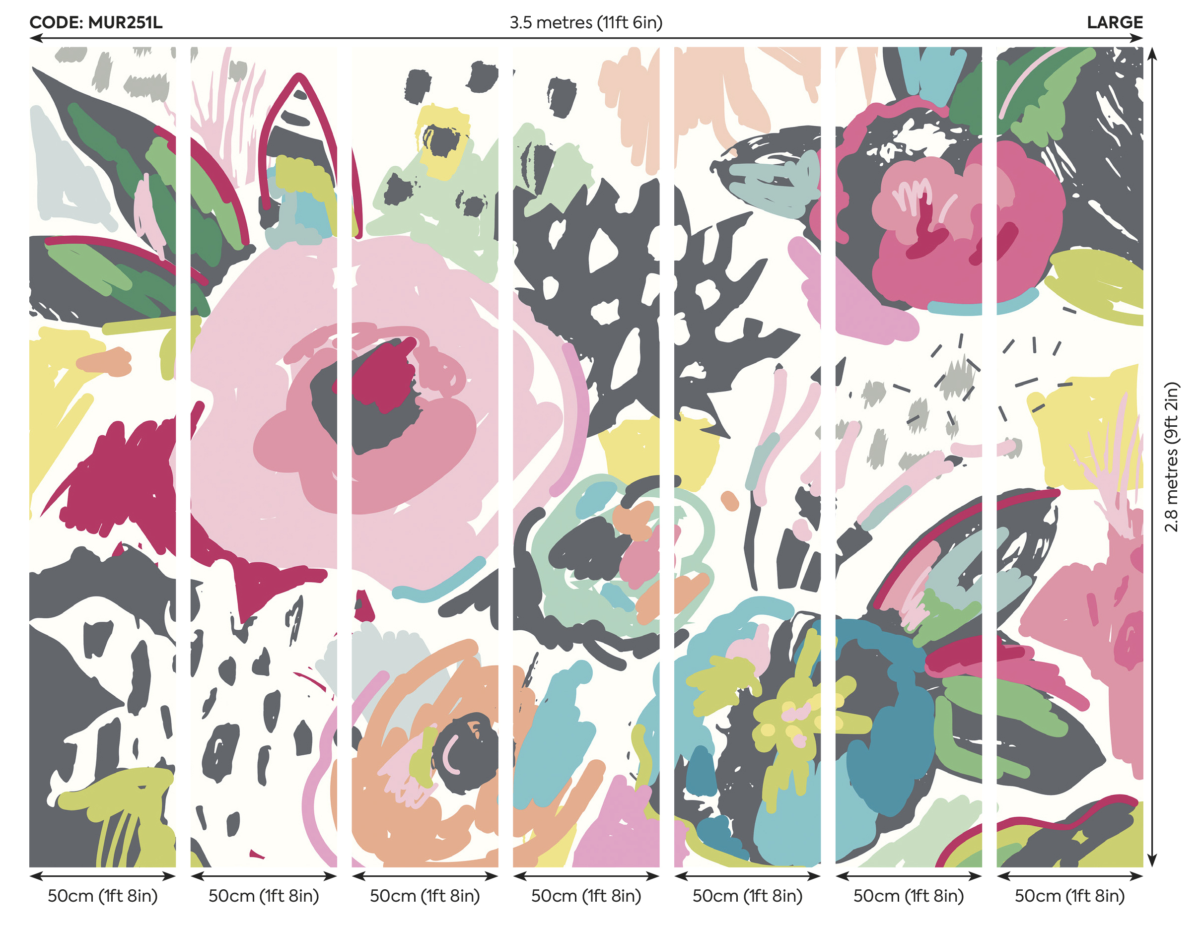 ✔ L – 350 cm széles x 280 cm magas (7 db 50 cm -es csíkból épül fel)
