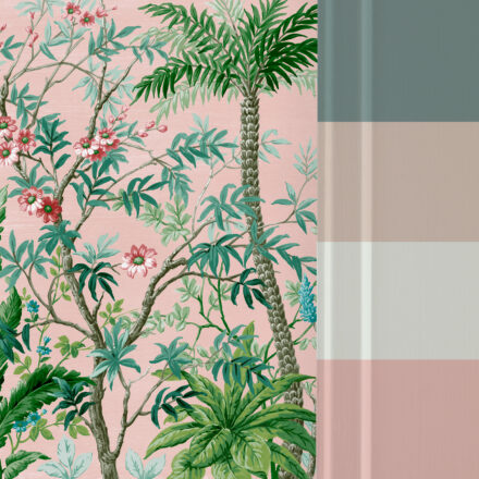 Rózsaszín egzotikus növénymintás fotótapéta, mely üde frissességgel tölti meg a teret és látványosan dekorálja otthonod falát.