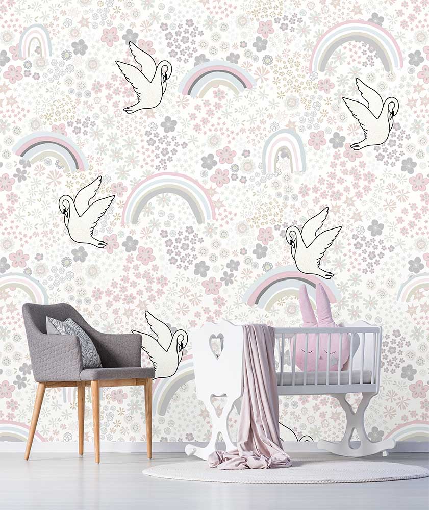 Igazi lányos tapéta, hiszen színei, mintája és még a gyöngyházfényű felülete is kis hercegnőnk szobáját hivatott dekorálni. Rózsaszínes színeivel és a csodaszép hattyúkkal meseországba repíti a szoba lakóját.