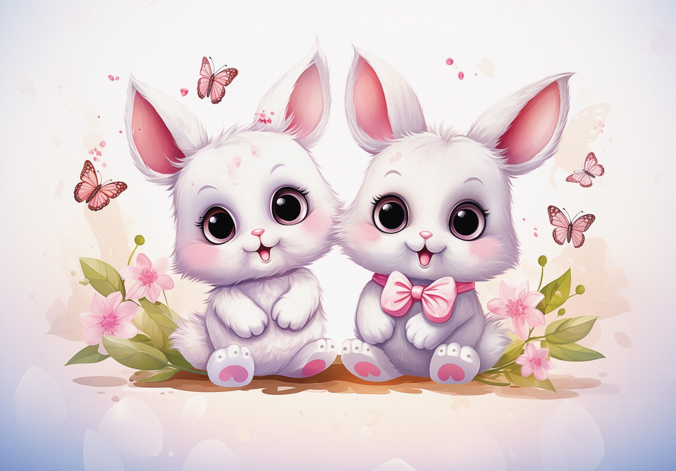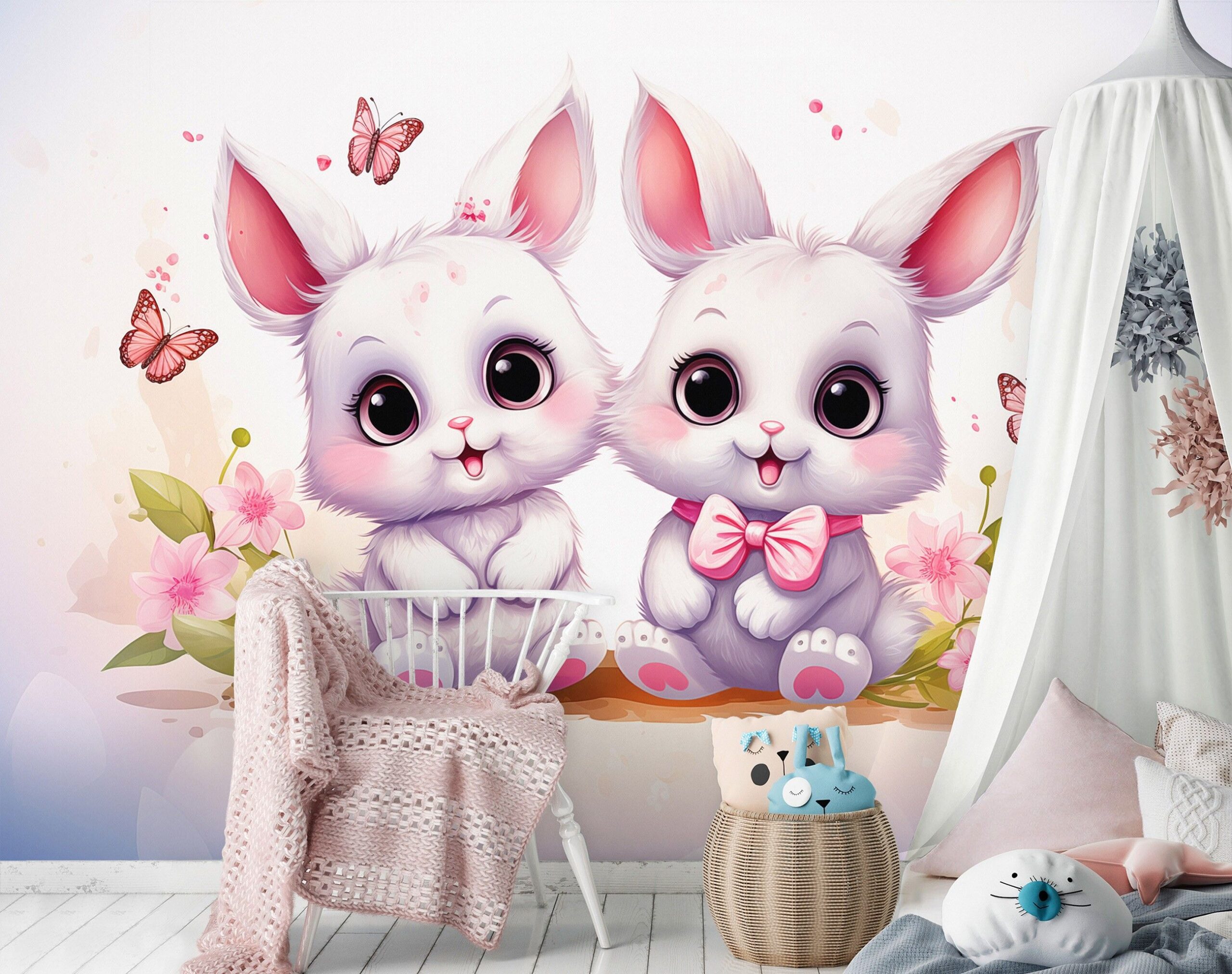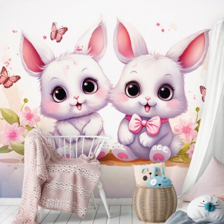 Rózsaszín nyuszis fotótapéta, melynek vidám állatai mosolyt csalnak gyermekünk arcára.