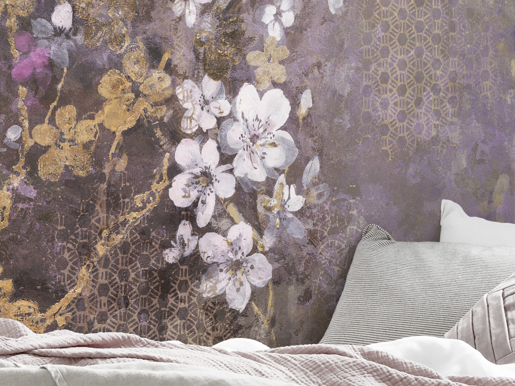 Intenzív, romantikus látványt nyújt a virágos fotótapéta. Lila színárnyalata magával ragadó képet ad, mely különleges atmoszférát teremt az enteriőrben.