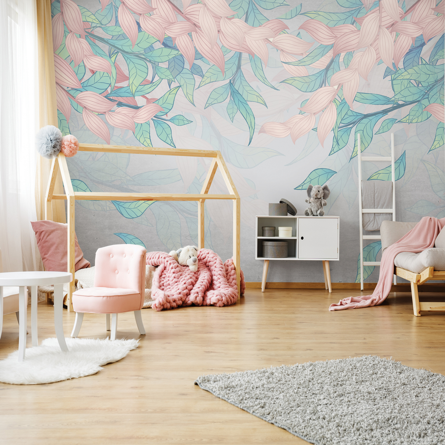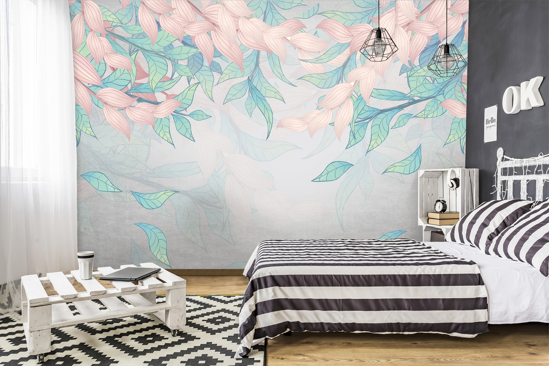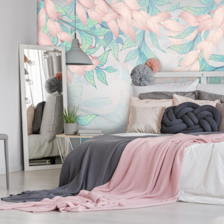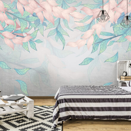 Fiatalos lendület járja át a tapétát, melynek kellemes pasztell színei csodás mutatnak otthonunk minden helyiségében. Divatos levélminta, ahol a mennyezetről omlanak le a szél lengette levelek.