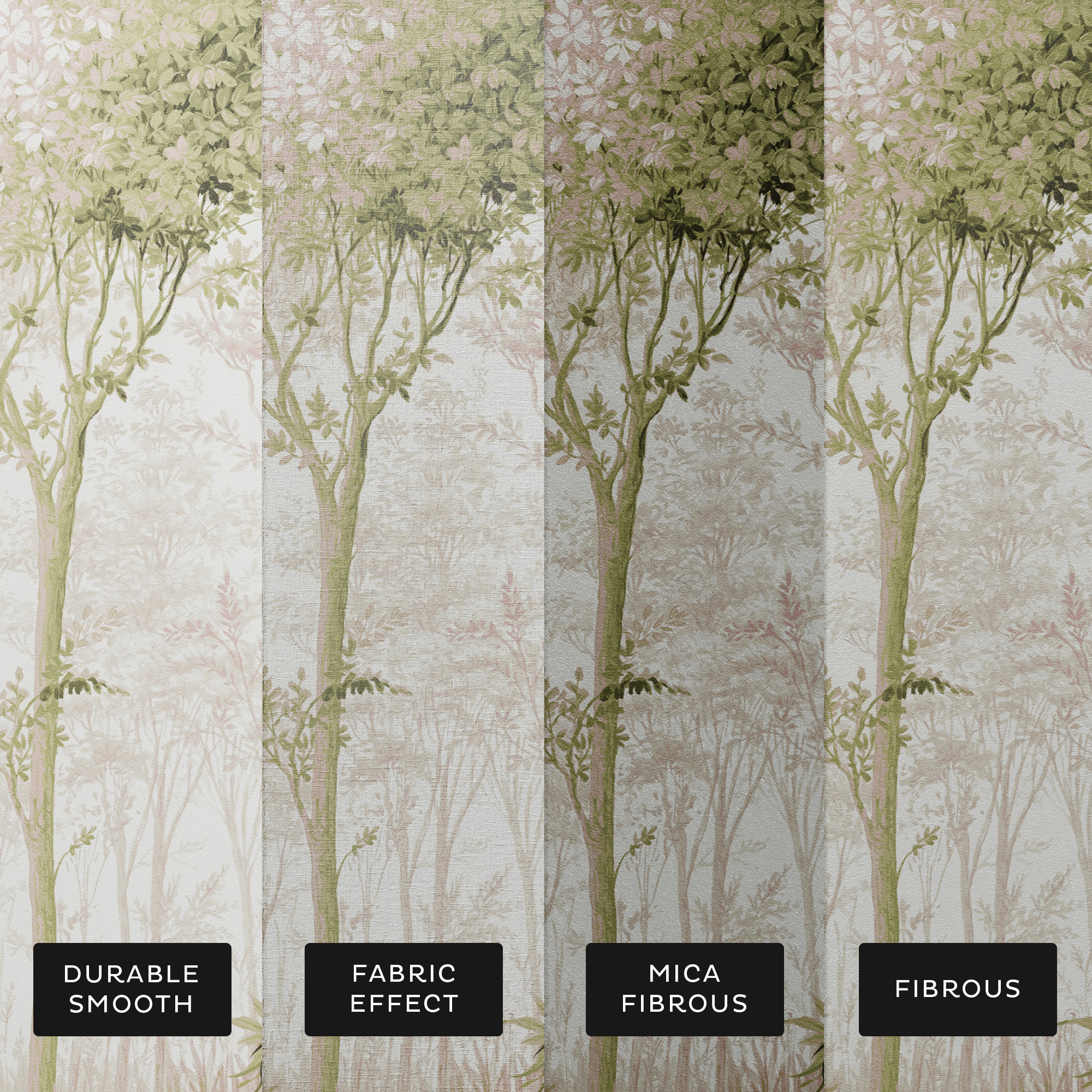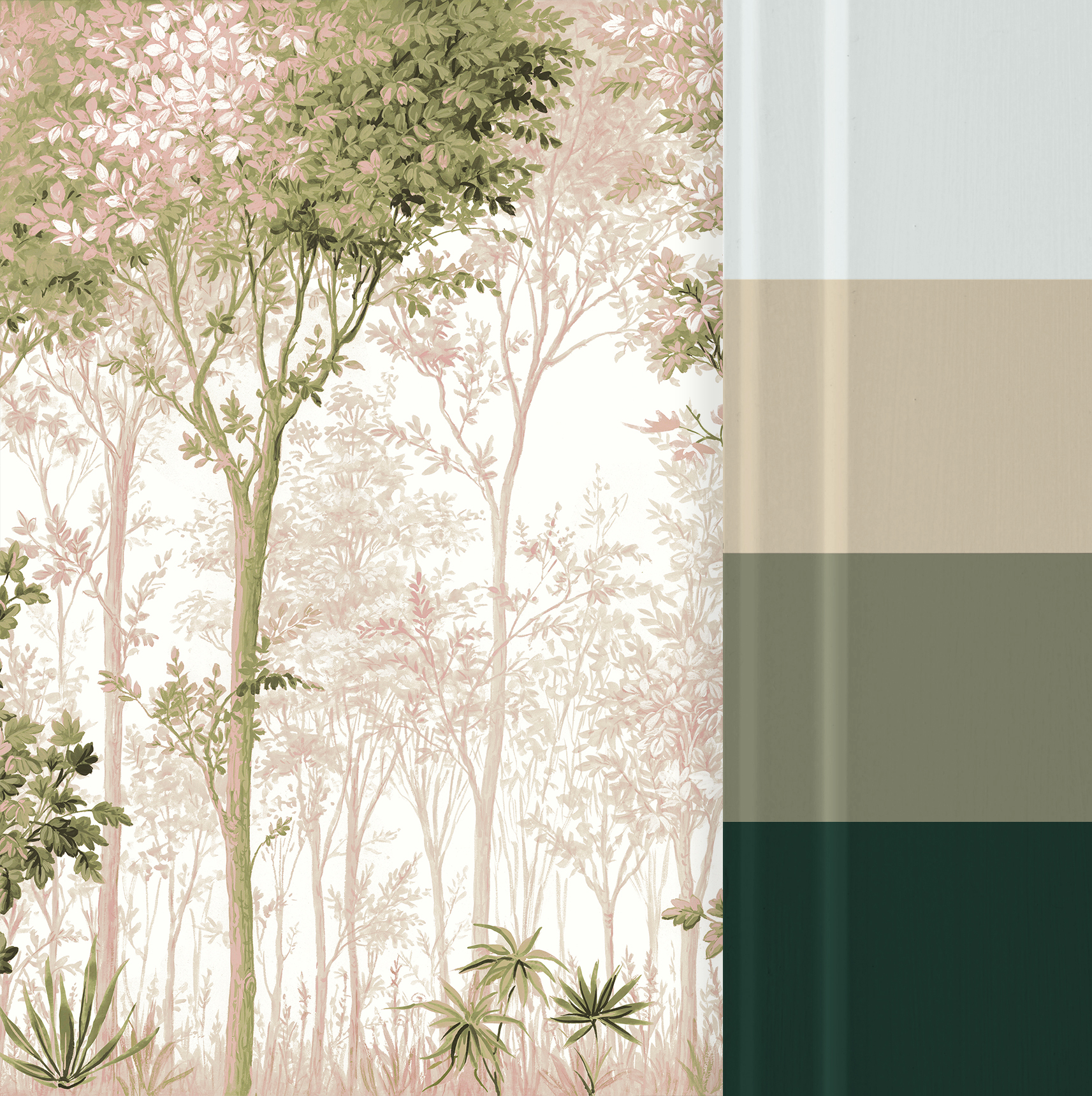 Magasba törő lombos fák dekorálják a panel tapétát, melynek köszönhetően a természet harmóniája költözik otthonunkba, miközben a magas fák nyújtják a teret.