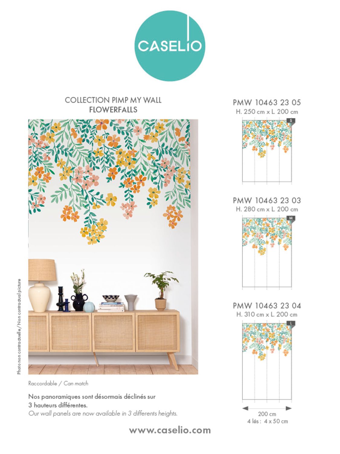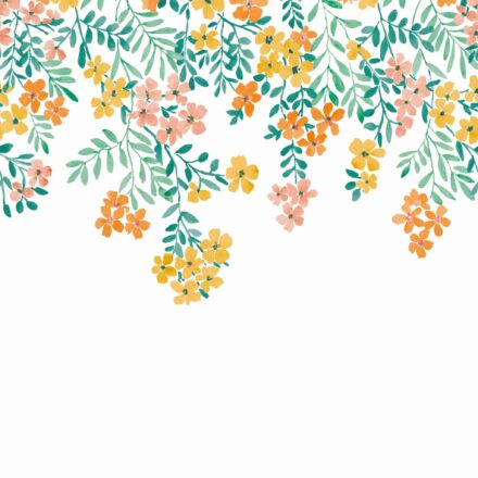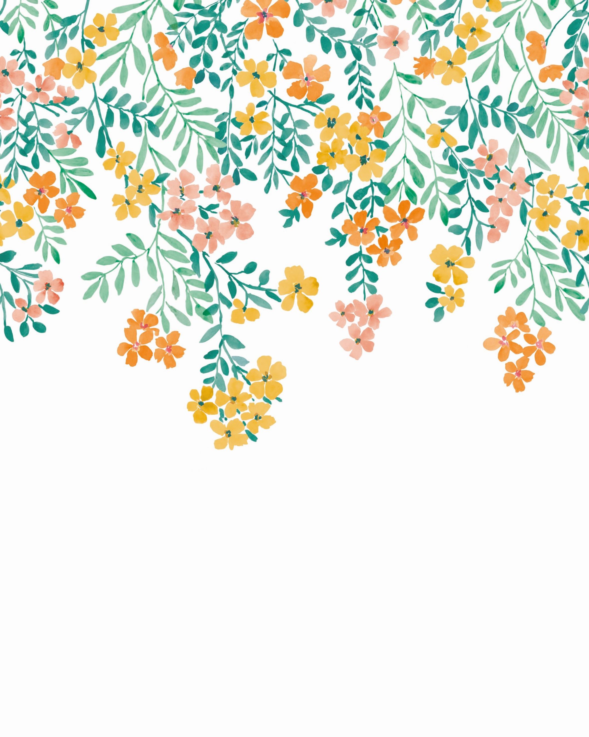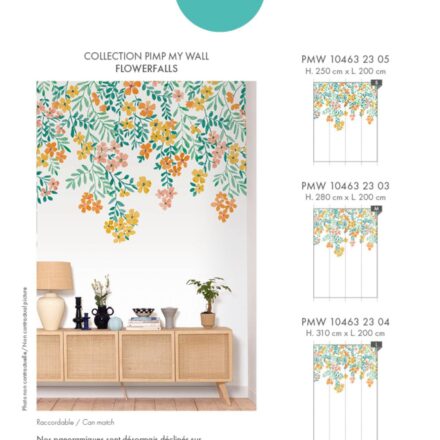 Sárga – narancssárga virágos Caselio fotótapéta, melyen a virágos játékos könnyedséggel hullanak lefelé. Tökéletes dekoráció erősen bútorozott lakások számára, hogy a színt, fiatalos hangulatot csempésszünk otthonunkba.