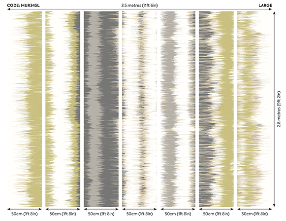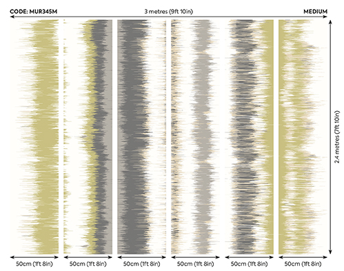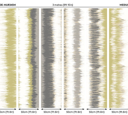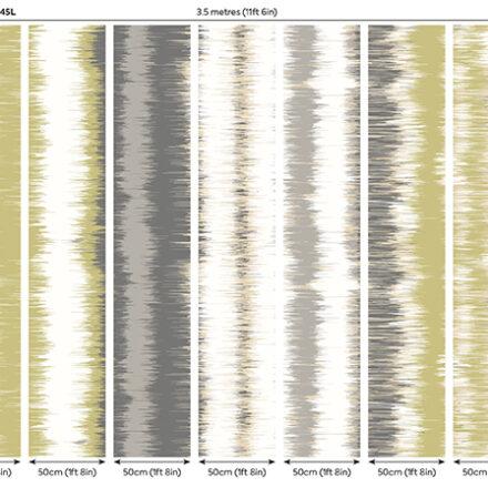 Sárgás zöld – szürke színátmenetes fotótapéta, melyen különböző szélességű függőleges csíkok olvadnak egymásba, dimenziót és mozgást adva a mintának. Tökéletes választás, ha szeretnél hatásos, de egyszerű megjelenést teremteni.