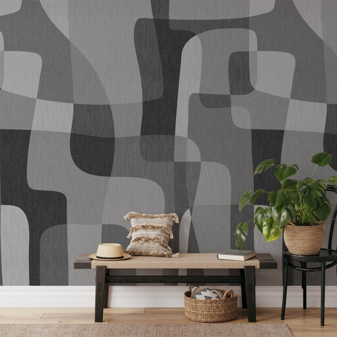 Skandi stílusú sötét szürke fotótapéta absztrakt mintával, melynek szabálytalan formája melegséget árasztó színvilággal párosul. A fotótapéta harmonikus, megnyugtató látványt nyújt, otthonos atmoszférát teremt az enteriőrben.