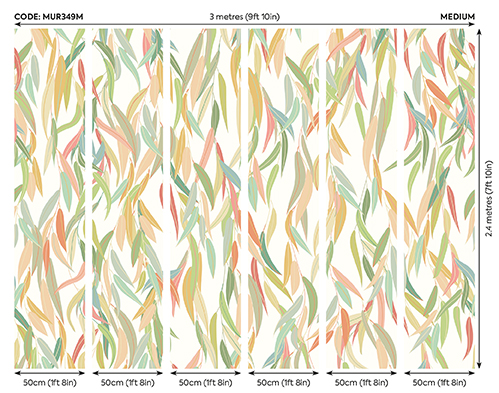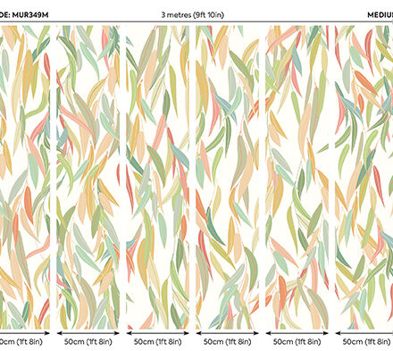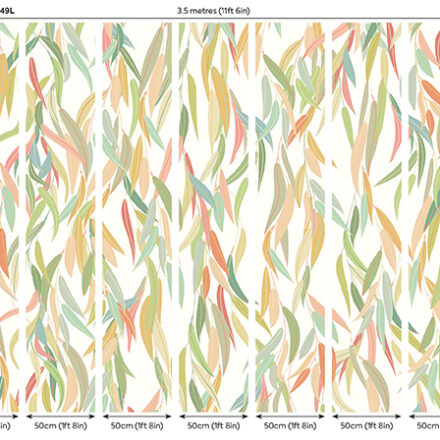 Skandináv stílusú fotótapéta zöldes árnyalatú fűzfalevelekkel, melyek egymásba fonódása dinamikus mozgást imitál. Fiatalos színek és design, mely ugyanakkor a természetből áradó harmonikus nyugalmat sugározza az enteriőrben.