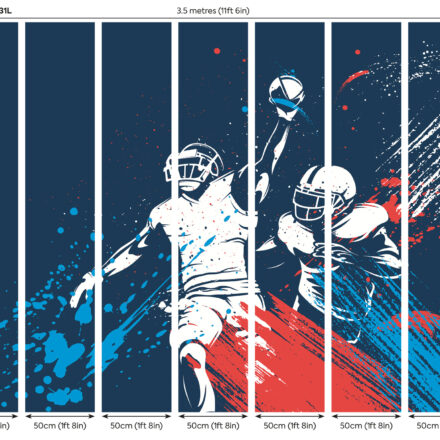 Sötétkék fotótapéta rögbijátékossal, mely tökéletes választás tinédzserszobákba.