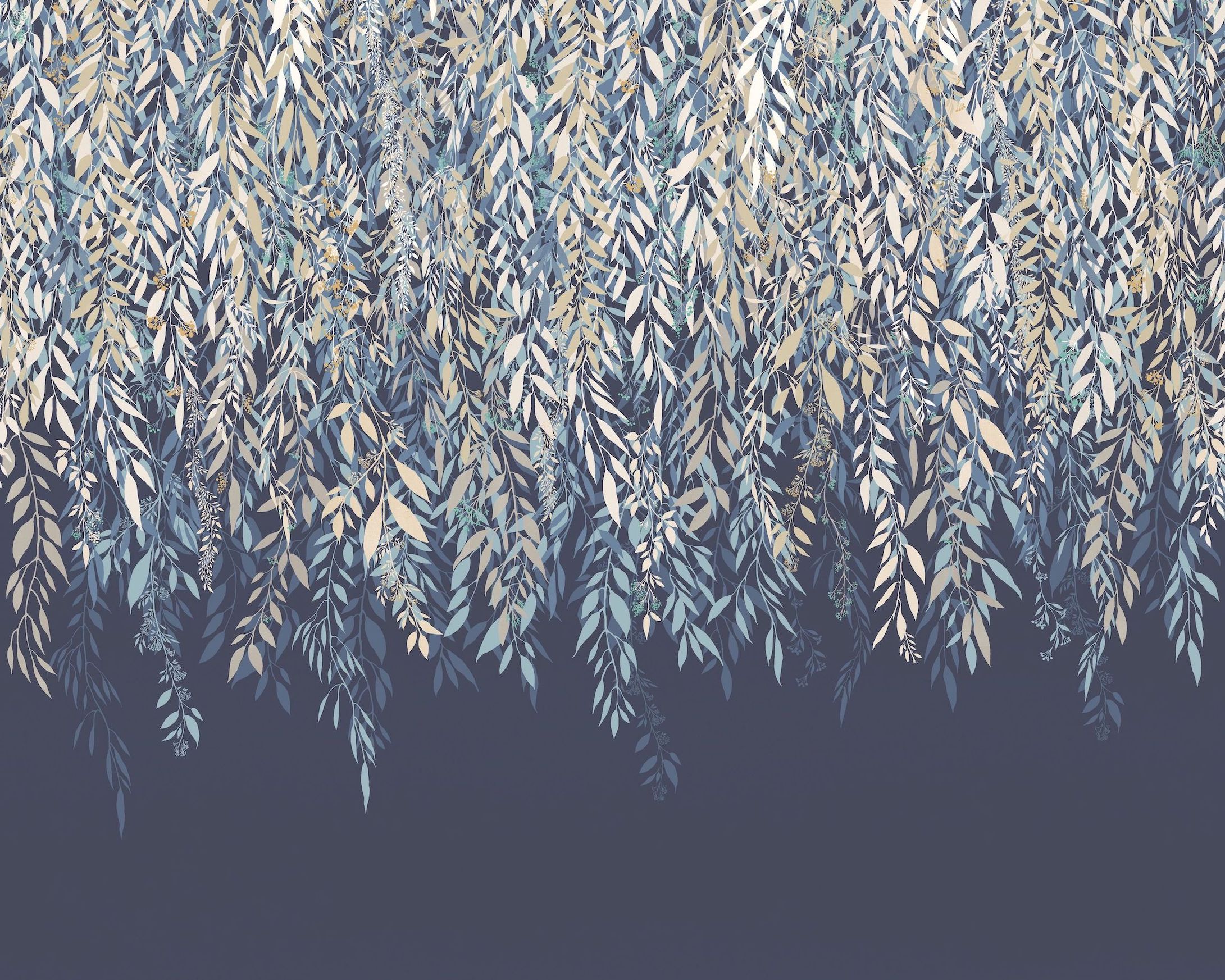 Lágyan leomló levélmintát ábrázoló fotótapéta, melynek kecses ágai több rétegben, egymásba fonódva hullanak lefelé a mennyezetről.