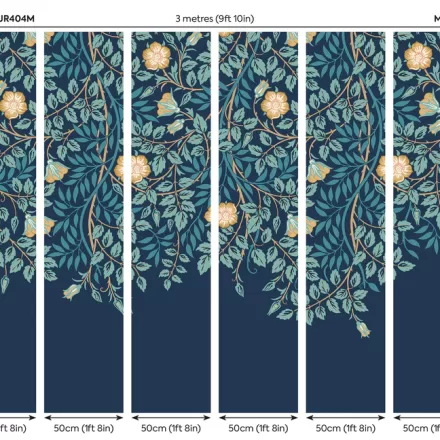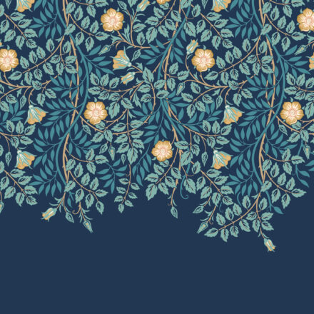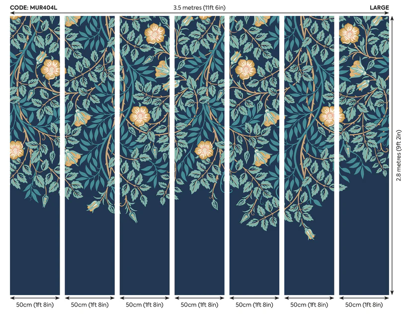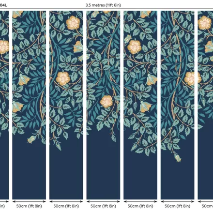 Sötétkék romantikus fotótapéta leomló virágokkal, mely tökéletes dekoráció ágy vagy kanapé mögötti falra, hogy egyedi atmoszférát teremtsünk otthonunkban.