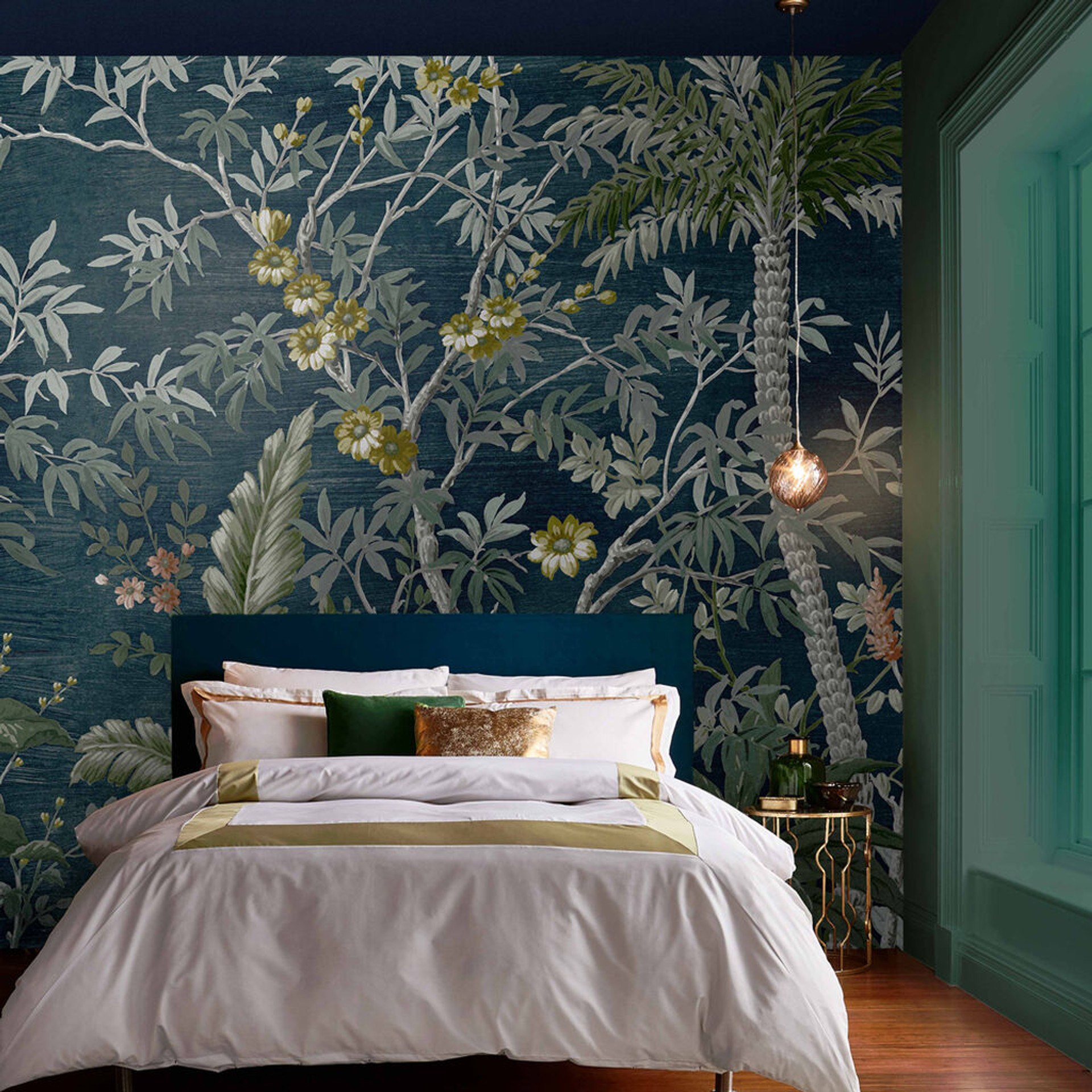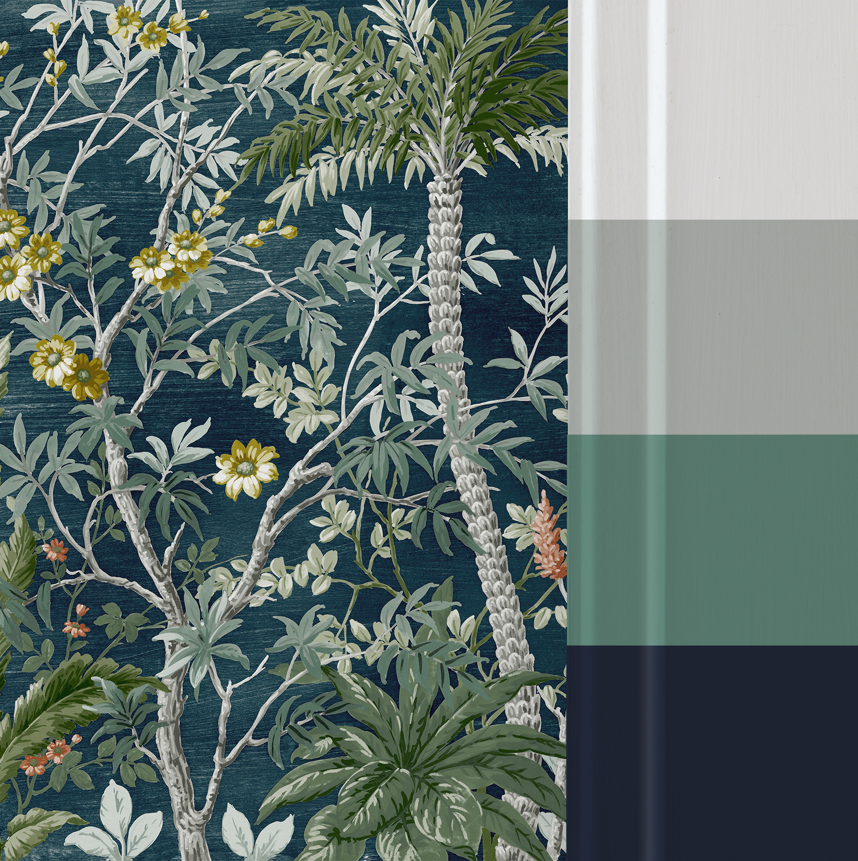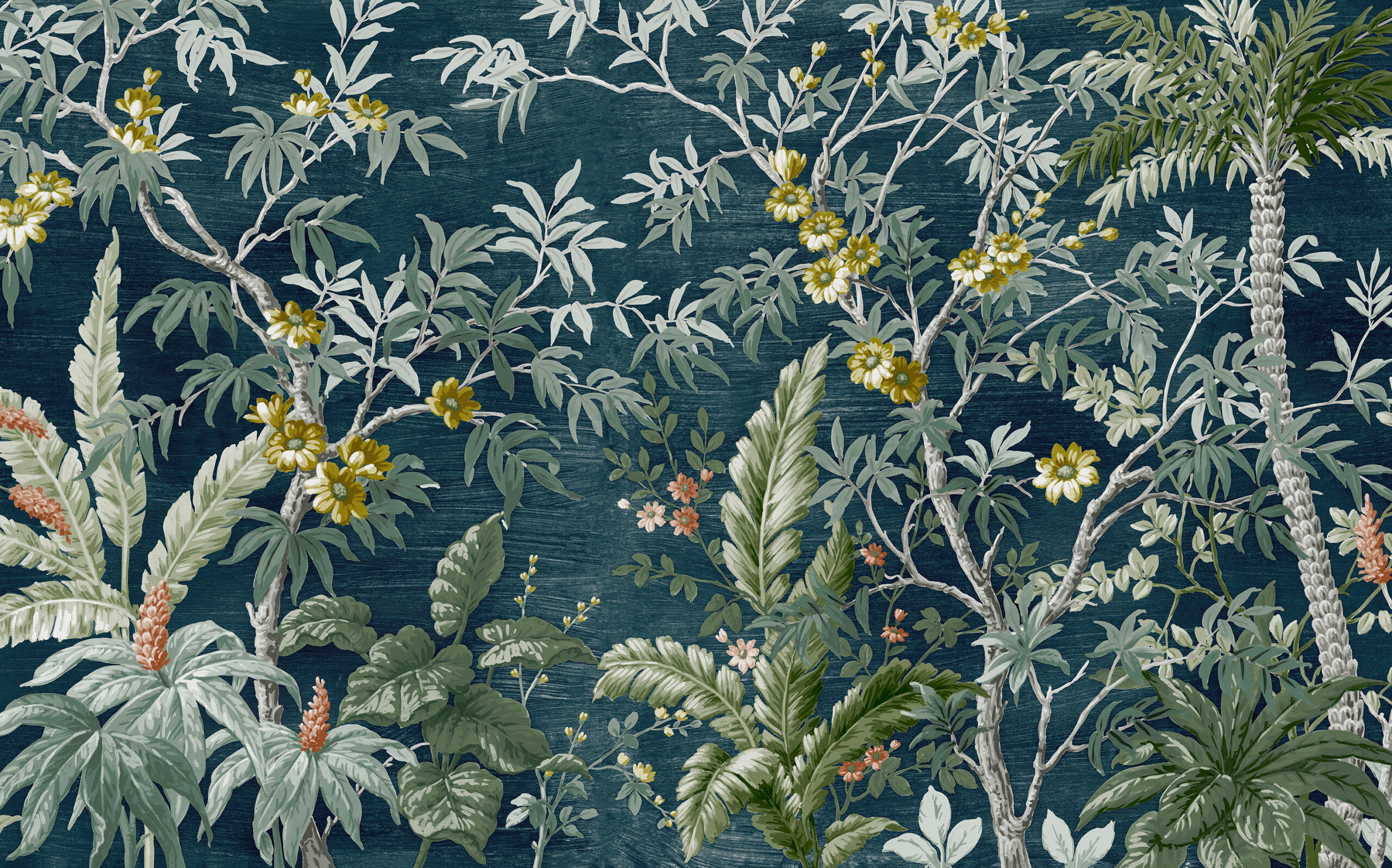Sötétzöld egzotikus növénymintás fotótapéta, mely üde frissességgel tölti meg a teret és látványosan dekorálja otthonod falát.