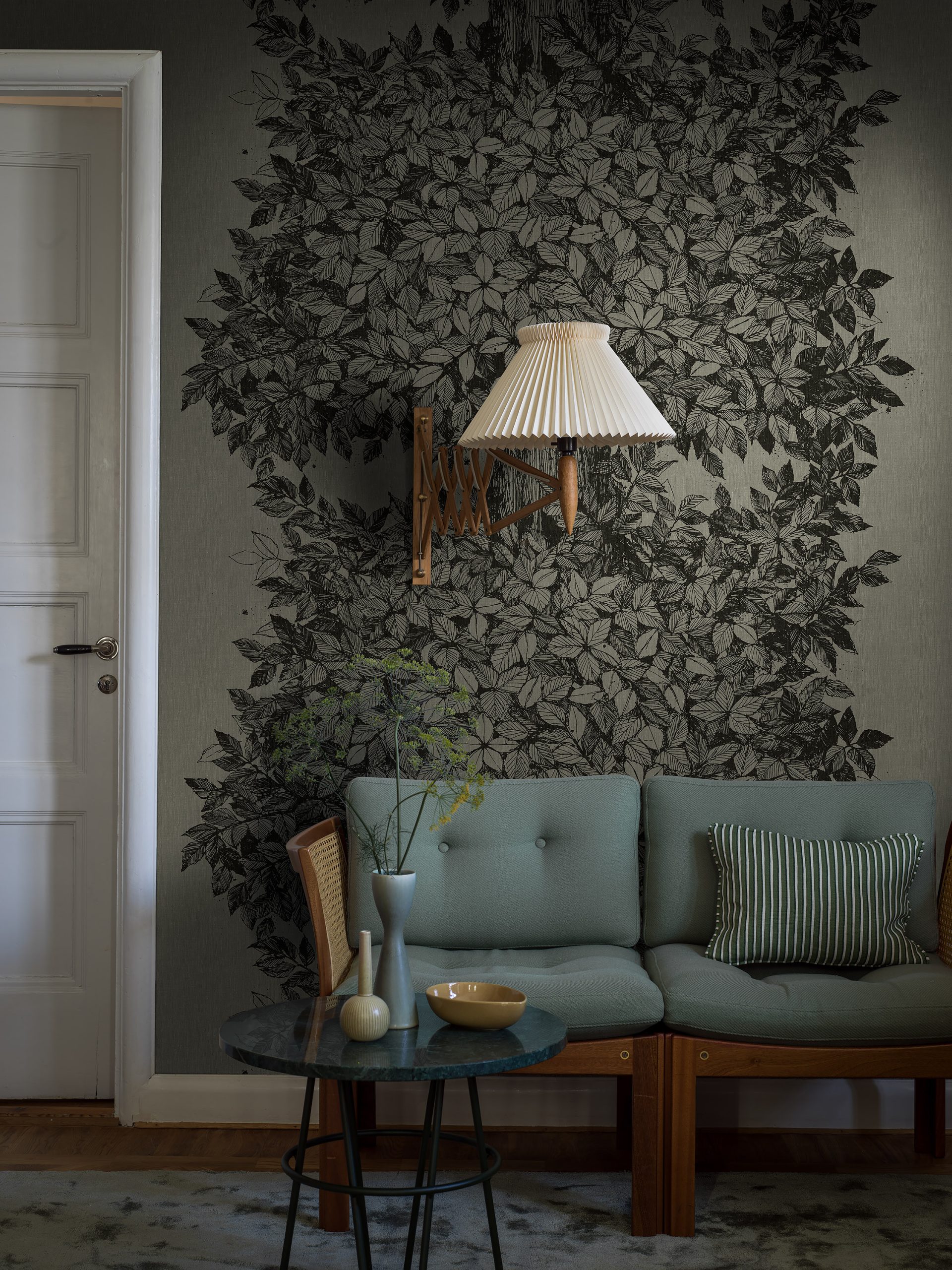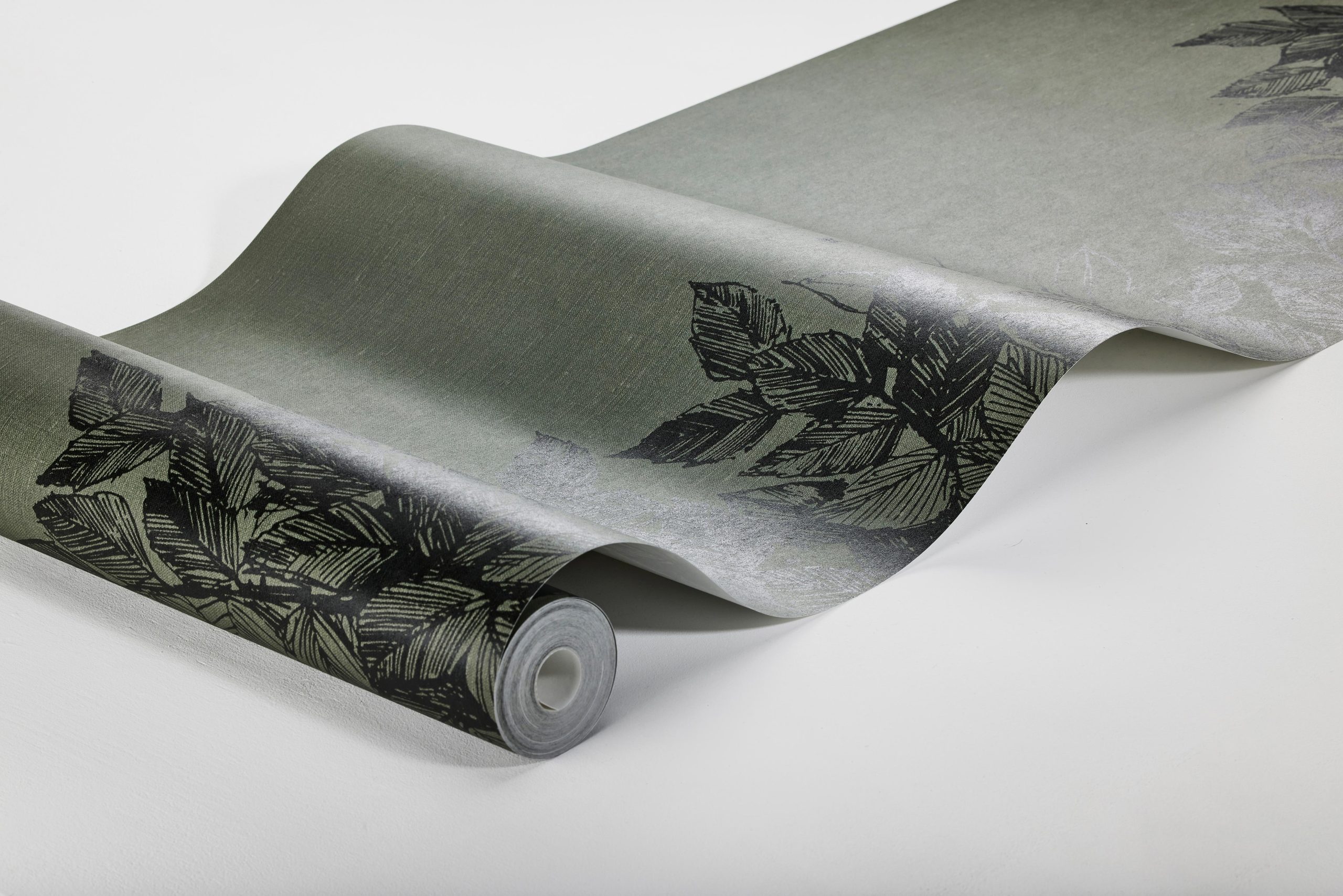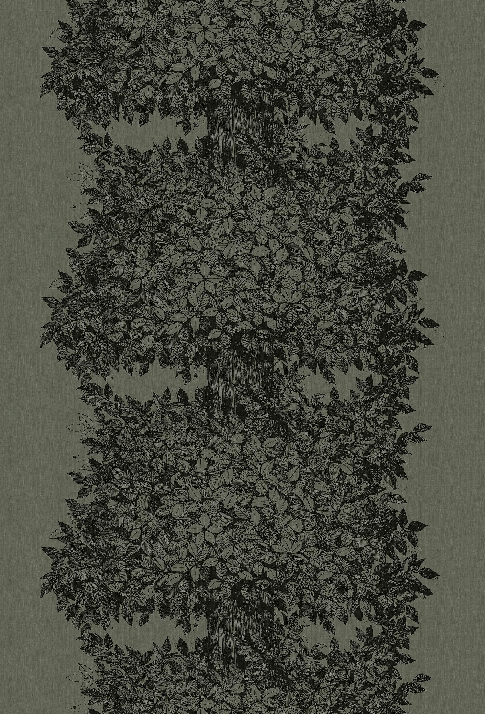 Sötétzöld – fekete mogyorófa mintás fotótapéta, melynek alapja a lenszövetet imitálja mintázatával. A mogyorófa mintát eredetileg textilre tervezték és lenszövetre nyomtatták, ennek hatását kívánja tükrözni a tapéta alapstruktúrája, mely a textilszövetet imitálja.