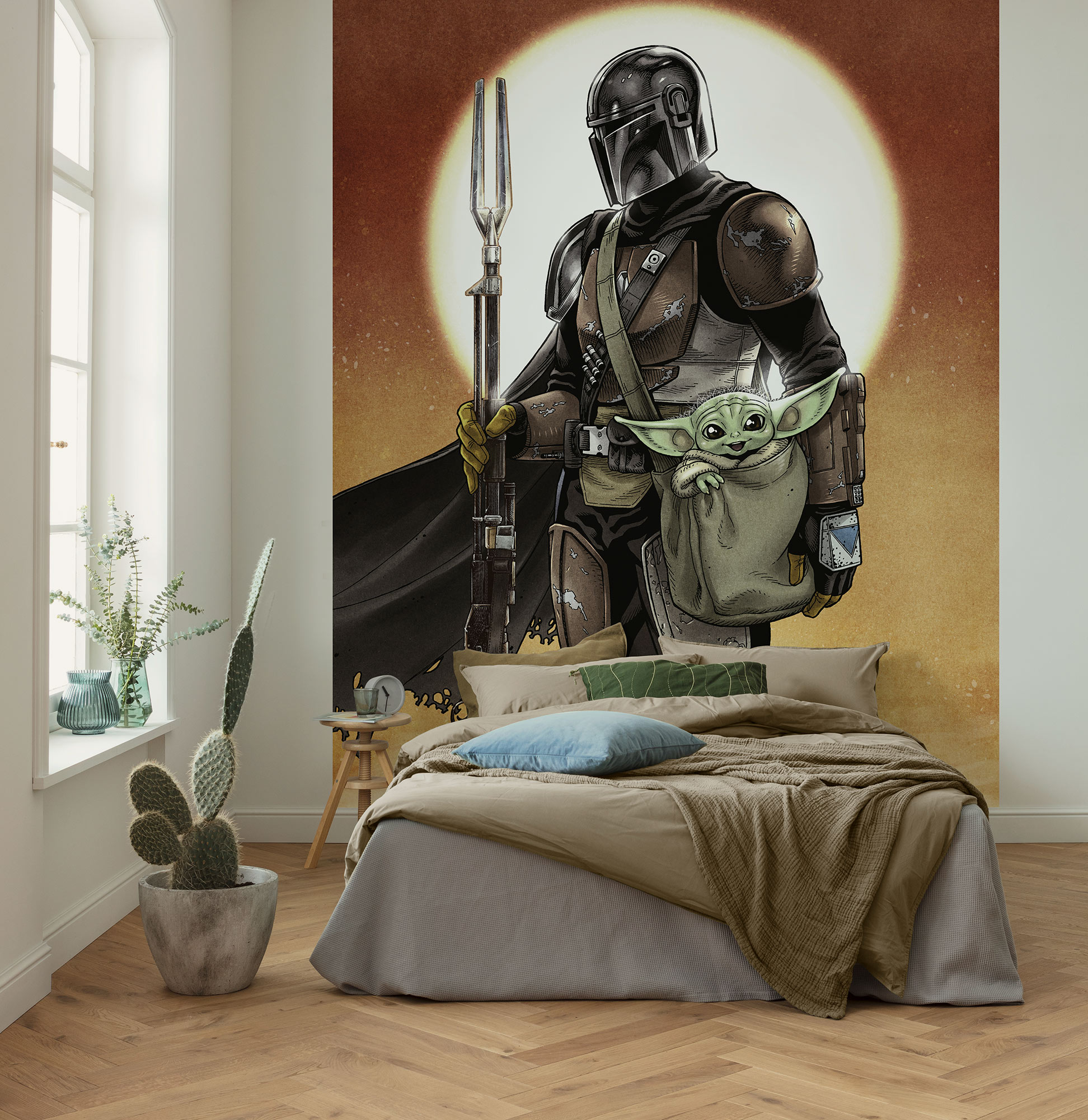 Star Wars Mandaloriai fotótapéta, amely életre kelti a galaxis egyik legemlékezetesebb párosát: a titokzatos Mandalorit és az elbűvölő Grogut. A jelenet egy aranyló naplementében játszódik, amely a végtelen űr világát idézi meg. A harcos komoly, védelmező testtartása és Grogu játékos, mégis megnyugtató jelenléte különleges egyensúlyt teremt a kaland és az érzelem között. Ez a fotótapéta ideális választás minden Star Wars-rajongónak, aki egy karakteres, mégis meghitt hangulatú dizájnelemmel dobná fel otthonát.