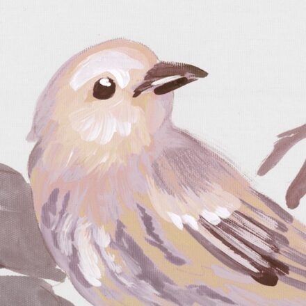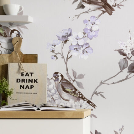 Elbűvölő fotótapéta, mely csodaszép pasztell színeivel ragadja meg a szemlélőt. A rózsaszín és lila énekes madarak az illatos virágok között bújnak meg, boldog éneket dalolva nekünk.