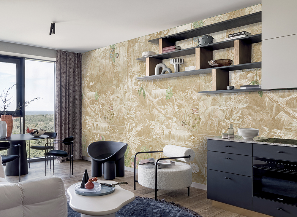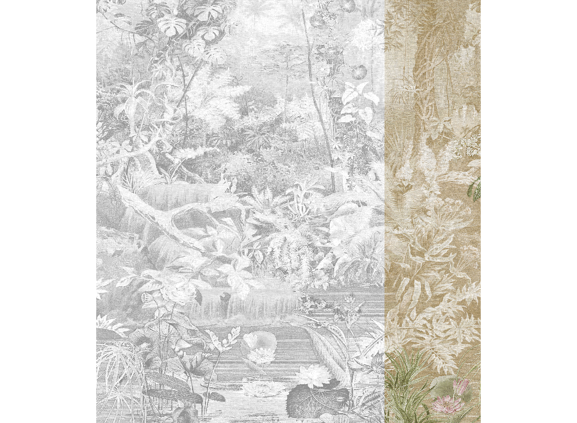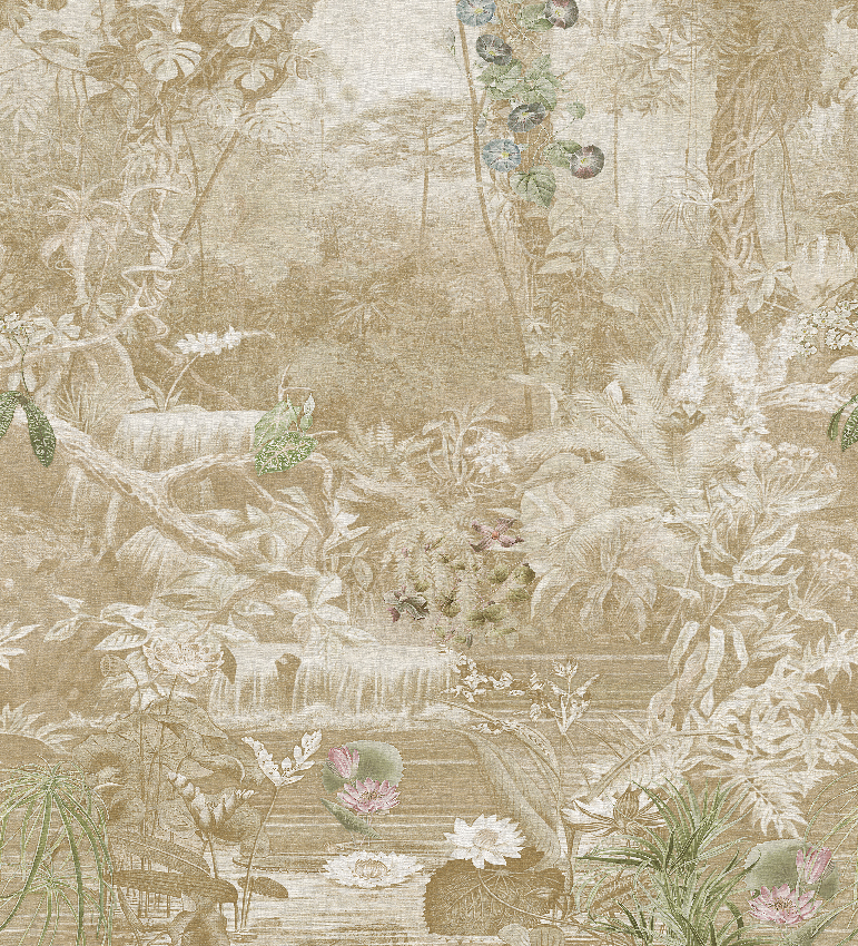 A Jannelli&Volpi szépiabarna trópusi fotótapétája igazi vizuális élmény, ahol a természet színei szinte életre kelnek. A dzsungel buja növényzete harmonikus árnyalatokban bontakozik ki, mintha egy festmény és egy álomvilág találkozását látnánk.