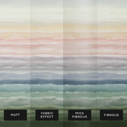 Színátmenetes fotótapéta Clarissa Hulse kézzel festett akvarellrétegeinek ihletésére született, melyek a kőzetrétegek természetes textúráit idézik meg. A különleges ombre design sávos átmenetei a sötét tónusoktól az egészen halvány árnyalatokig terjednek. Egyedülálló sokoldalúságát az adja, hogy a tapéta mindkét irányban felhelyezhető – a legsötétebb rész kerülhet alulra vagy felülre, így a tér hangulatához igazítható. Modern és elegáns választás nappaliba, hálószobába vagy akár dolgozószobába, ahol a természetes textúrák és a lágy színátmenetek nyugtató, harmonikus környezetet teremtenek.