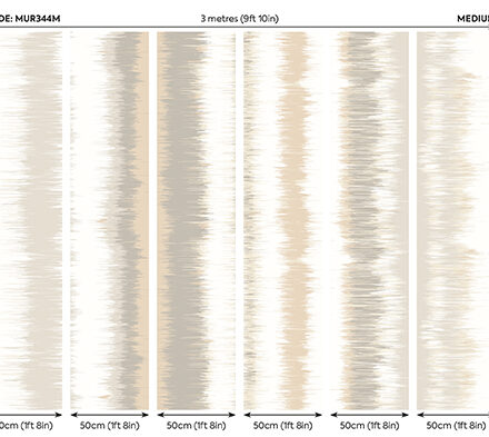 Színátmenetes fotótapéta natúr színekben, melyen különböző szélességű függőleges csíkok olvadnak egymásba, dimenziót és mozgást adva a mintának. Tökéletes választás, ha szeretnél hatásos, de egyszerű megjelenést teremteni.