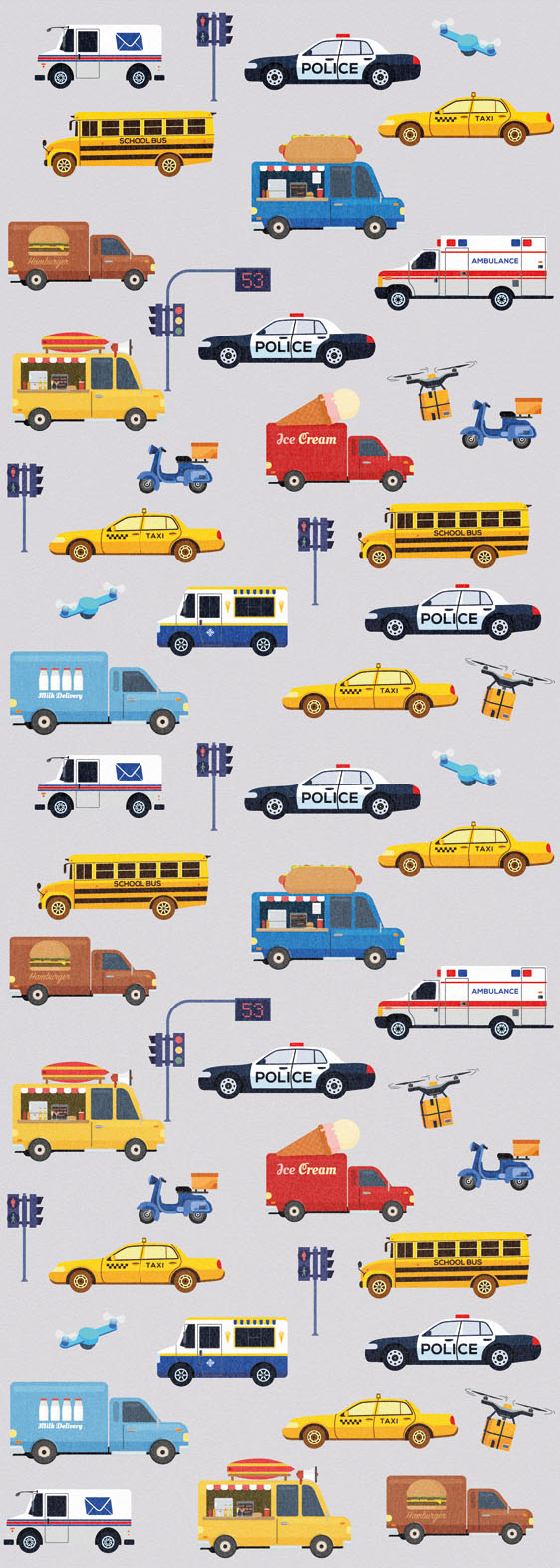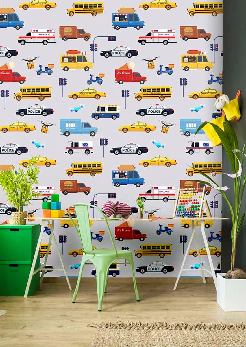 Melyik kisfiú ne rajongna az autókért? Ezen a fotótapétán mindent megtalálhat, a rendőrautótól egészen a teherautókig.