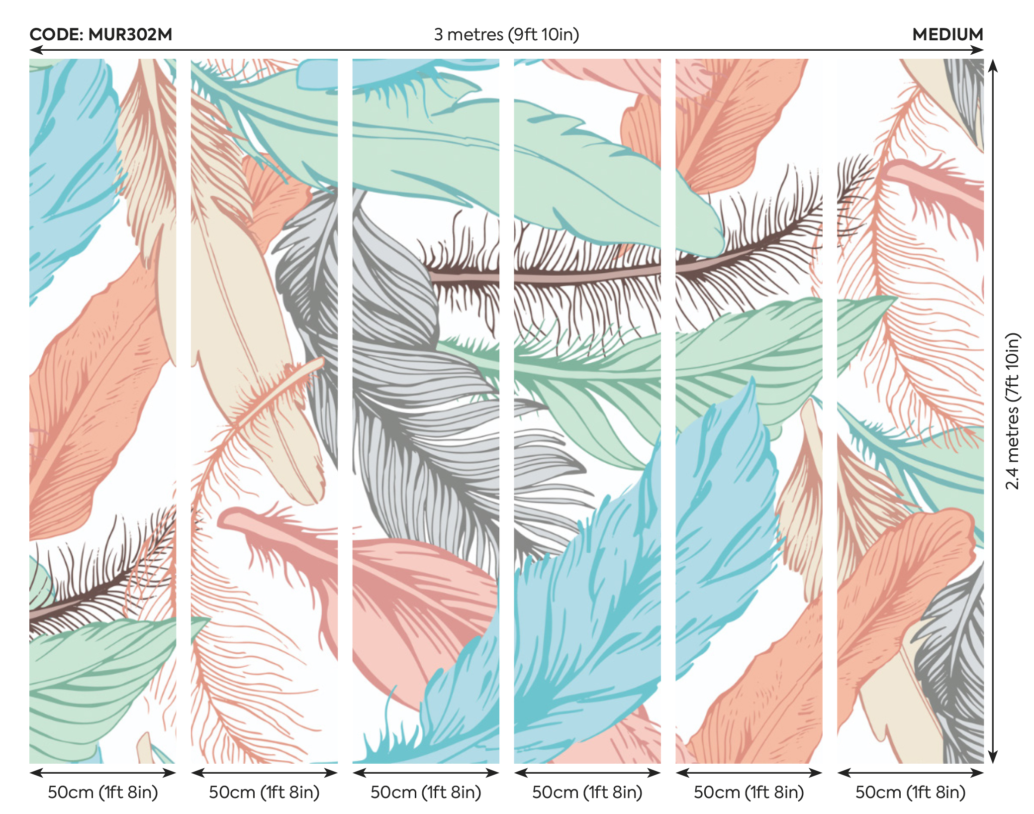 ✔ M – 300 cm széles x 240 cm magas (6 db 50 cm-es csíkból épül fel)