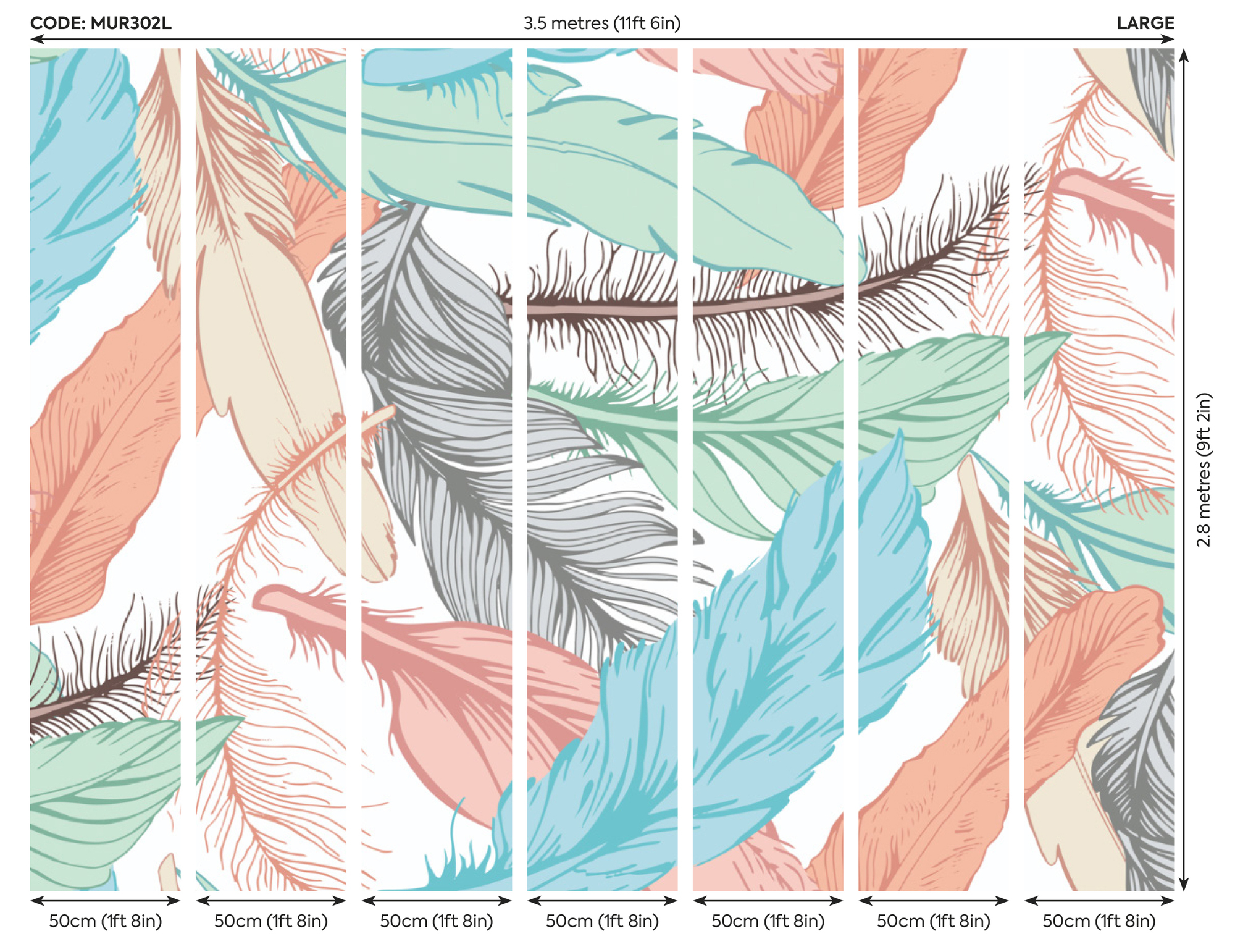 ✔ L – 350 cm széles x 280 cm magas (7 db 50 cm -es csíkból épül fel)
