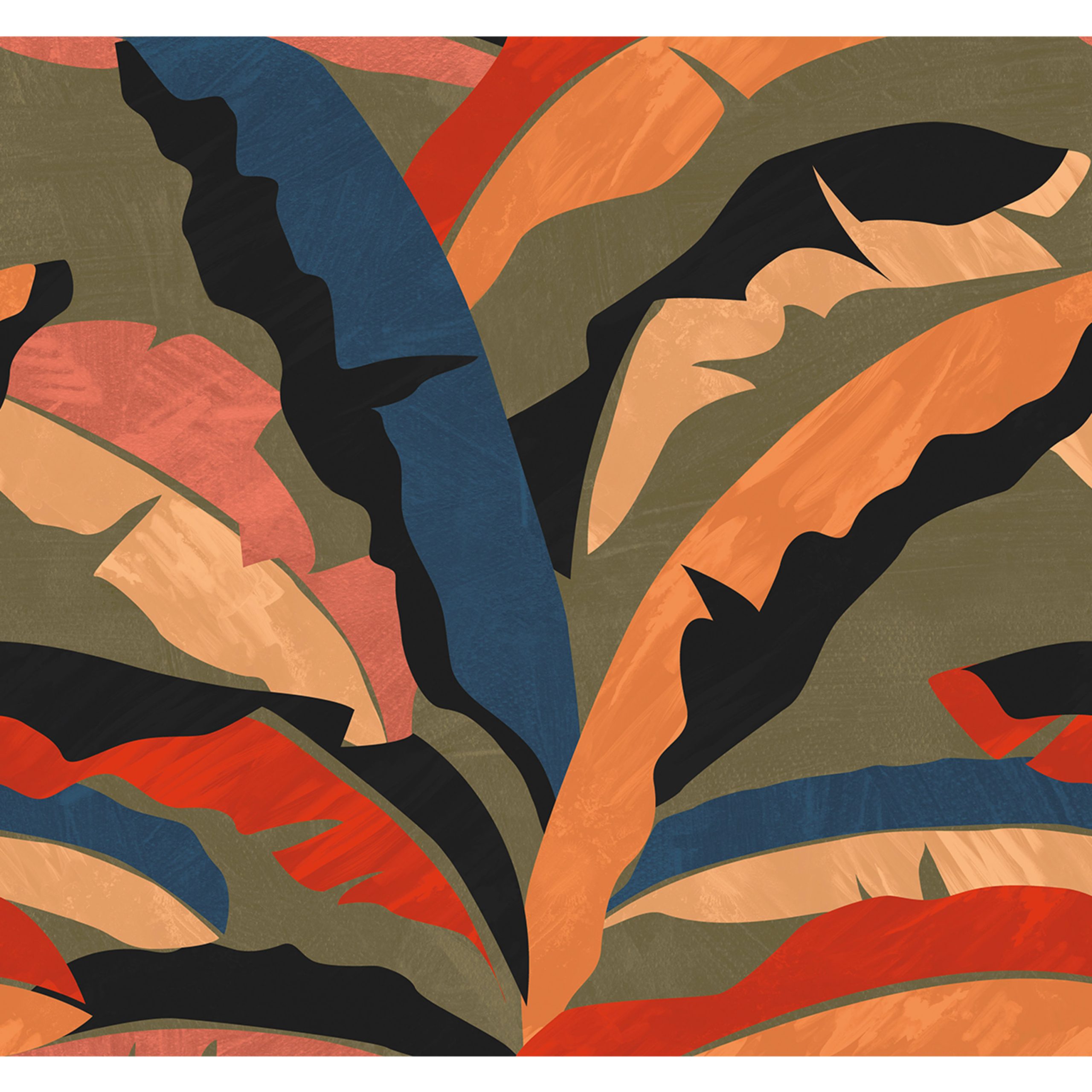 Nagyméretű pálmaleveles fali poszter, melynek izgalmas színei kiemelik a tapétát a szokványos levél mintás tapéták sorából. Meleg színei otthonos látványt teremtenek.