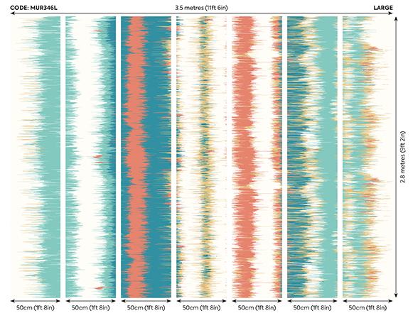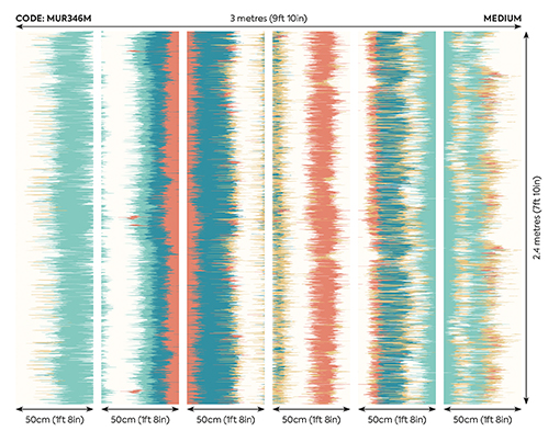 Színes színátmenetes fotótapéta, melyen különböző szélességű függőleges csíkok olvadnak egymásba, dimenziót és mozgást adva a mintának. Tökéletes választás, ha szeretnél hatásos, de egyszerű megjelenést teremteni.