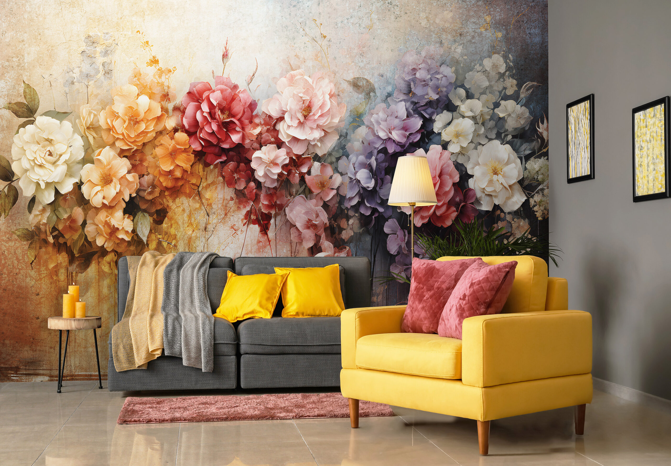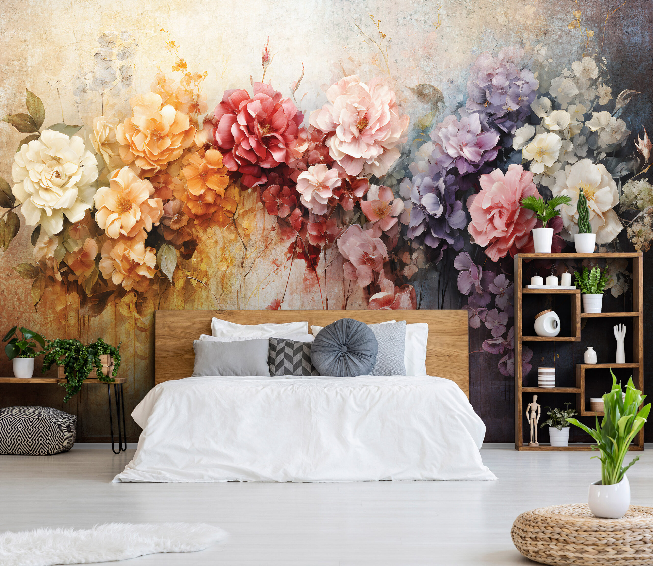Romantikus hangulatú fotótapéta, melynek színpompás virágai igazi WOW élményt nyújtanak az enteriőrben.