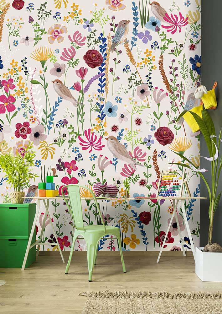 Vidám, színpompás virágos fotótapéta, mely garantálja az örök vidámságot a gyerekszobában. Lányos színeivel csodálatos fali dekoráció lehet kislányok szobájába.