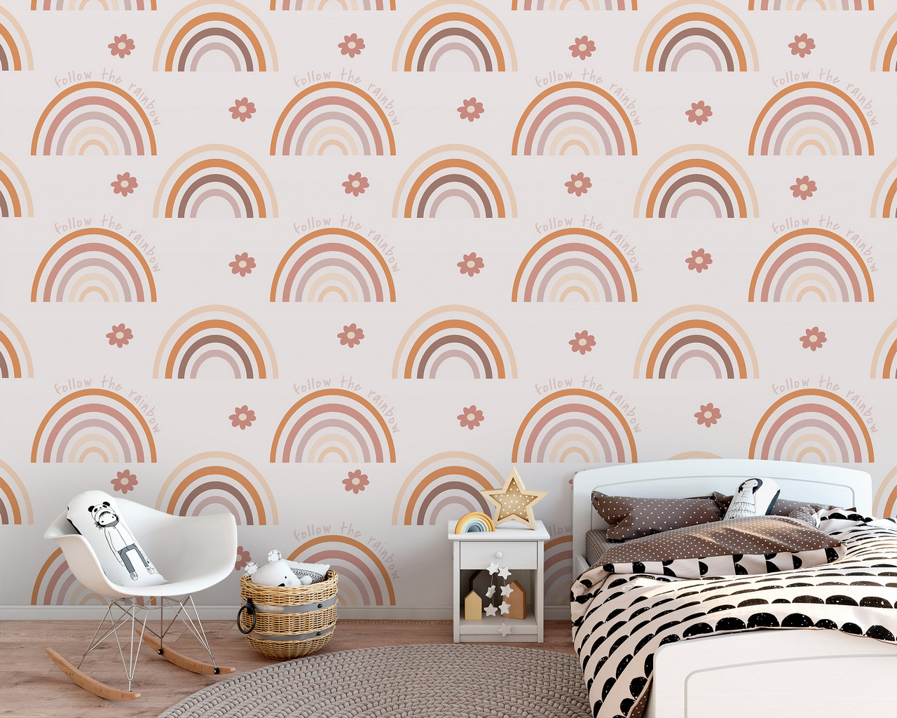 A szivárvány a béke és boldogság jelképe, melynek lányos színei vidámsággal töltik meg a gyerekszobát.