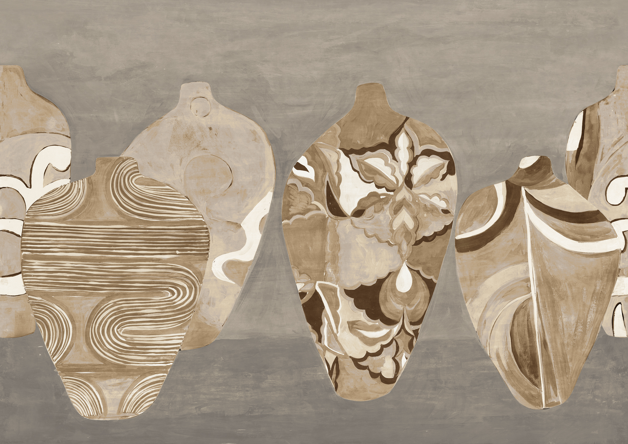 Szürke – barna exkluzív fotótapéta amforákkal, melyek különleges, egyedi hangulatot teremtenek.