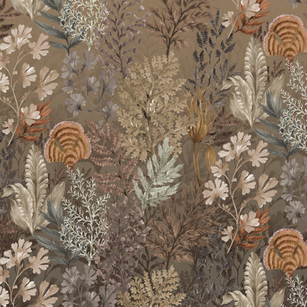 Óriás fotótapéta, melynek képe számtalan elem művészi kompozíciójából áll. A magányos tigrist dús növényzet veszi körbe. A képnek izgalmas kiegészítője az absztrakt virágminta.