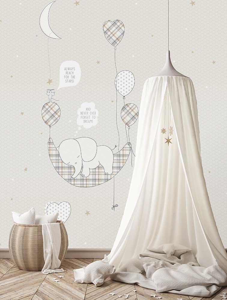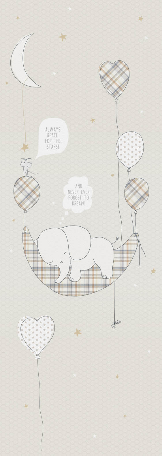 Csodás álmokat biztosít a poszter tapéta, melyen bájos elefánt alszik a Holdon.